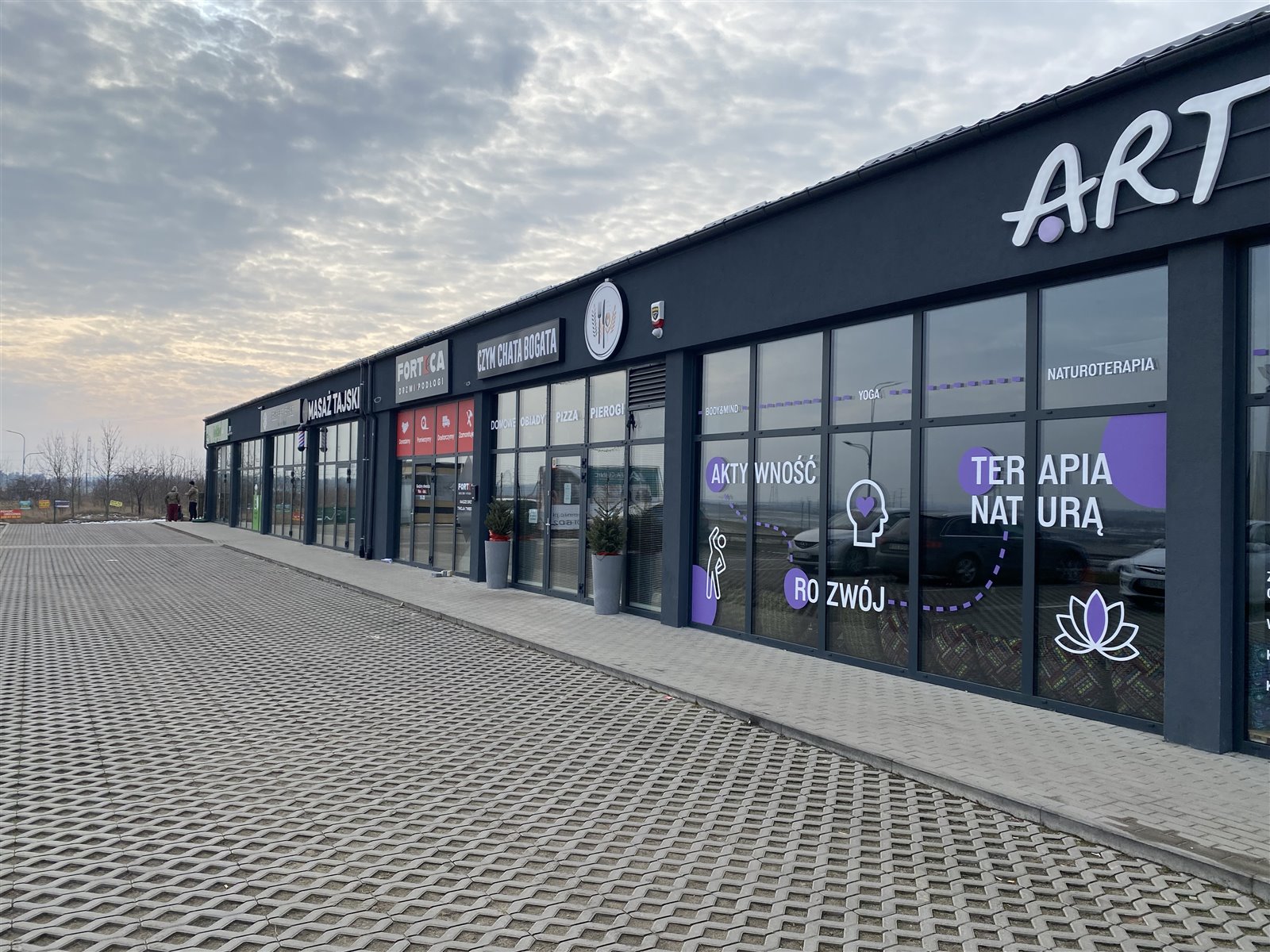 Lokal znajduje się w nowoczesnym budynku usługowym oddanym do użytku w zeszłym roku. W obiekcie funkcjonują m.in. Żabka, gabinet masażu tajskiego, salon kosmetyczny, sala do zajęć fitness, sklep z drzwiami oraz Mrówka, co zapewnia stały ruch w okolicy.