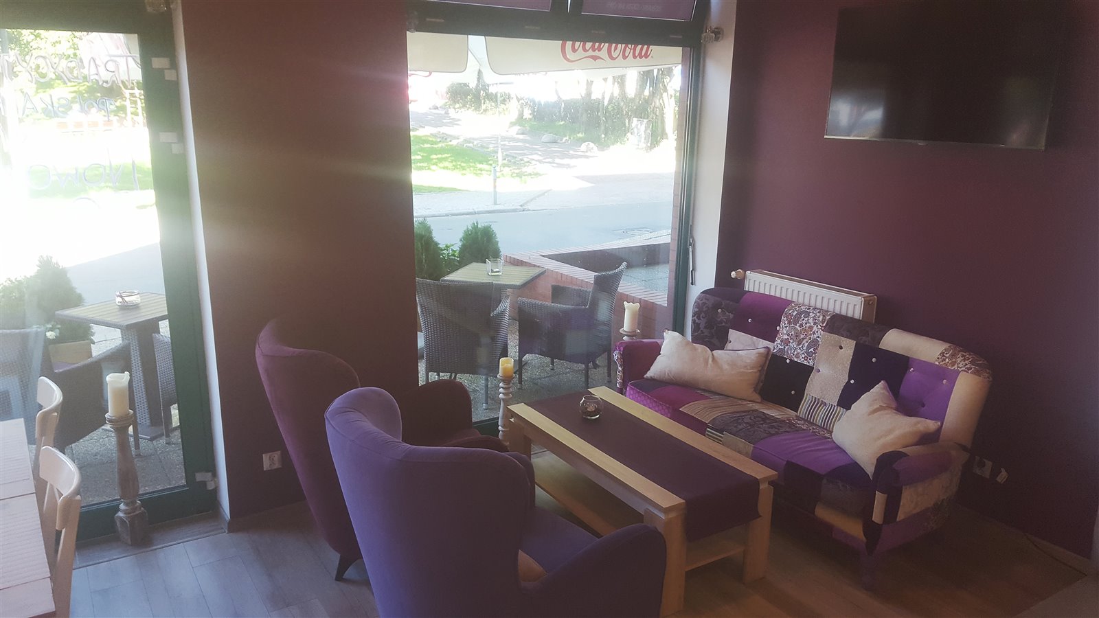 - kostkarka, lodówka podblatowa, włoski ekspres ciśnieniowy do kawy 3 grupowy , solidne nowe meble (stoły, krzesła), bar wykonany pod zamówienie , pełna zastawa Lubiana, komplety sztućców etc.