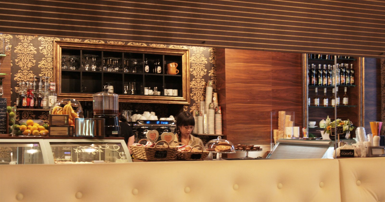 Romantyczny ciepły klimat, duże sofy, wygodne krzesła i ławy, stoliki do szybkiej obsługi w pierwszej sali jak i do dłuższego