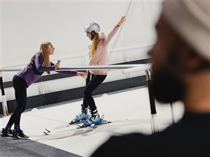 Sala do zajęć grupowych również jest dobrze doświetlona naturalnym światłem. Na ścianach znajdują się lustra. Systemu montażu na szybkozłącza znacznie przyspiesza zakładanie worków treningowych czy rur do Pole dance. W sali znajdują się: