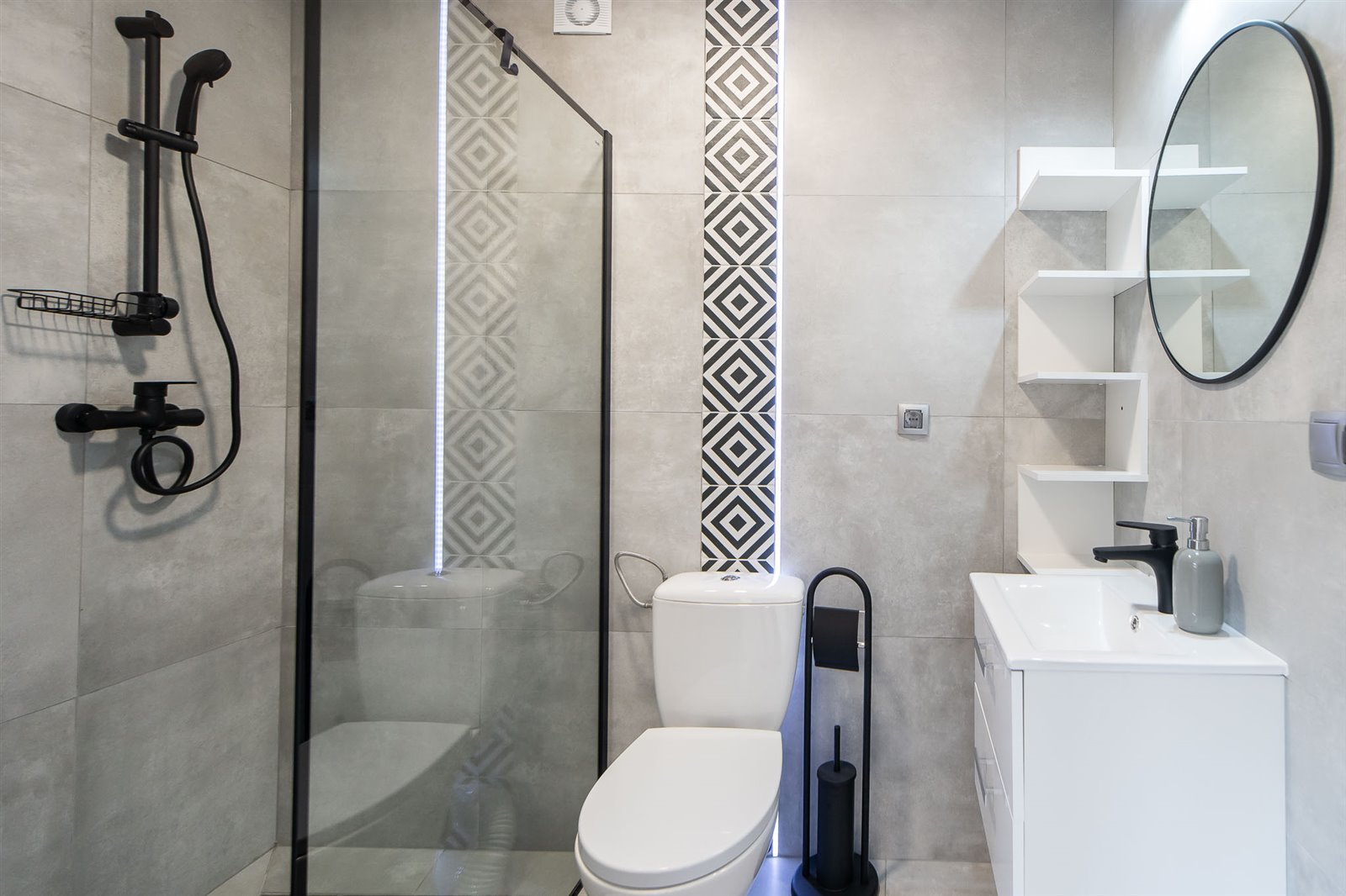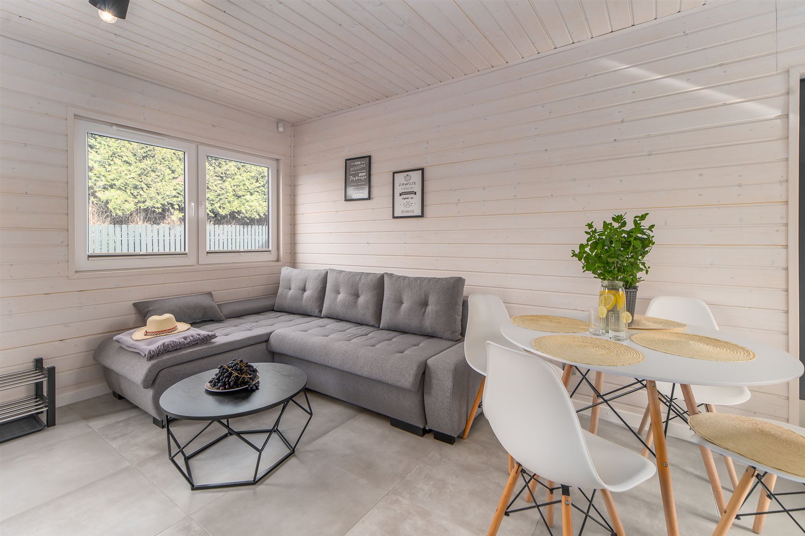 • Salon i taras – Przestronny salon, w którym goście mogą odpocząć, oglądać telewizję, korzystać z internetu oraz wygodna sofa. Taras z zestawem mebli ogrodowych to idealne miejsce na poranną kawę lub wieczorny relaks przy grillu.