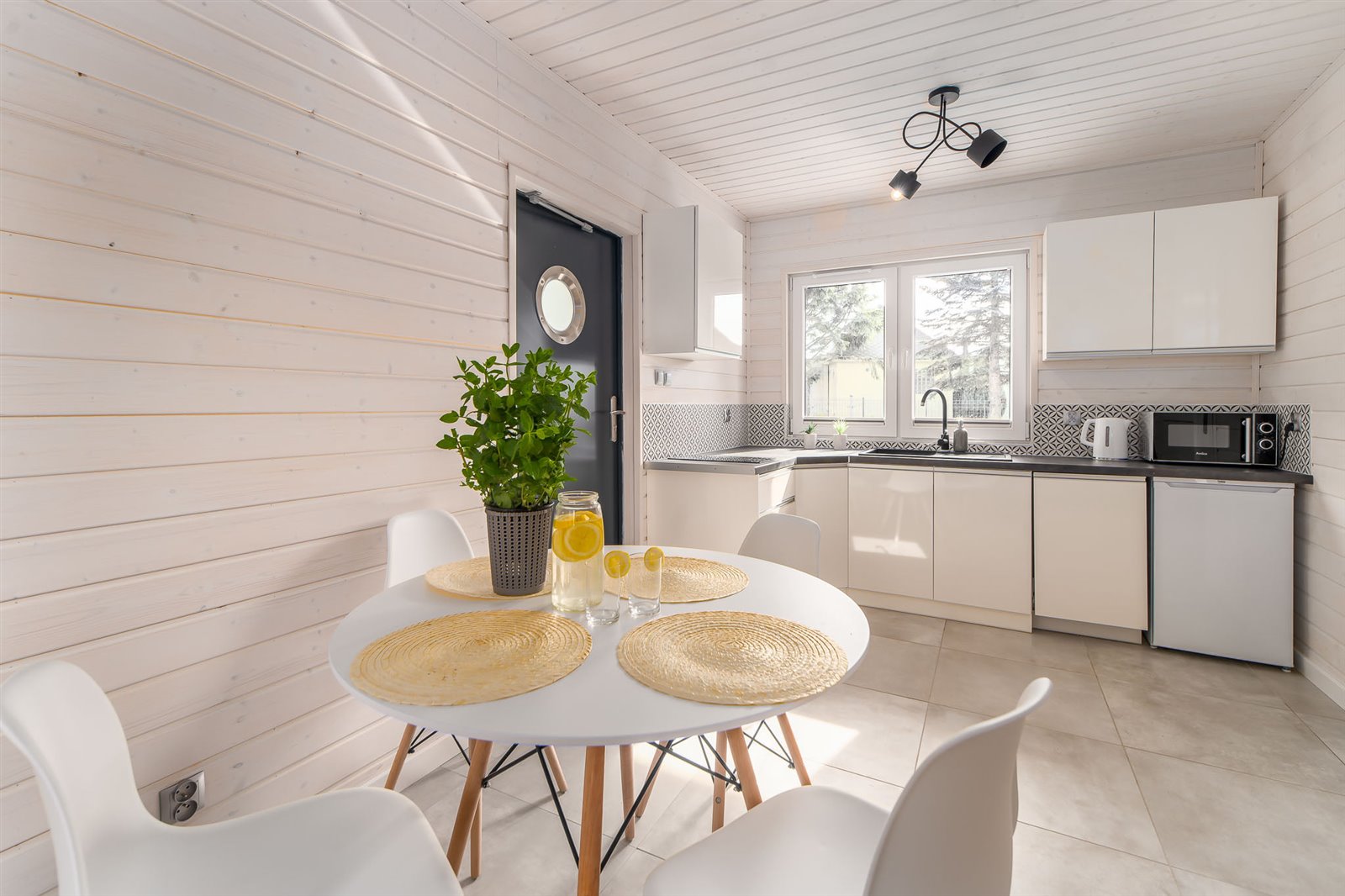 • Domki letniskowe – Każdy z 17 domków jest w pełni wyposażony, aby zapewnić gościom komfortowy pobyt. Każdy domek posiada aneks kuchenny (lodówka, kuchenka mikrofalowa, zmywarka, płyta grzewcza i komplet naczyń), co pozwala na samodzielne przygotowanie posiłków. Dodatkowo, w każdym domku znajduje się klimatyzacja, która zapewnia komfortową temperaturę o każdej porze roku.