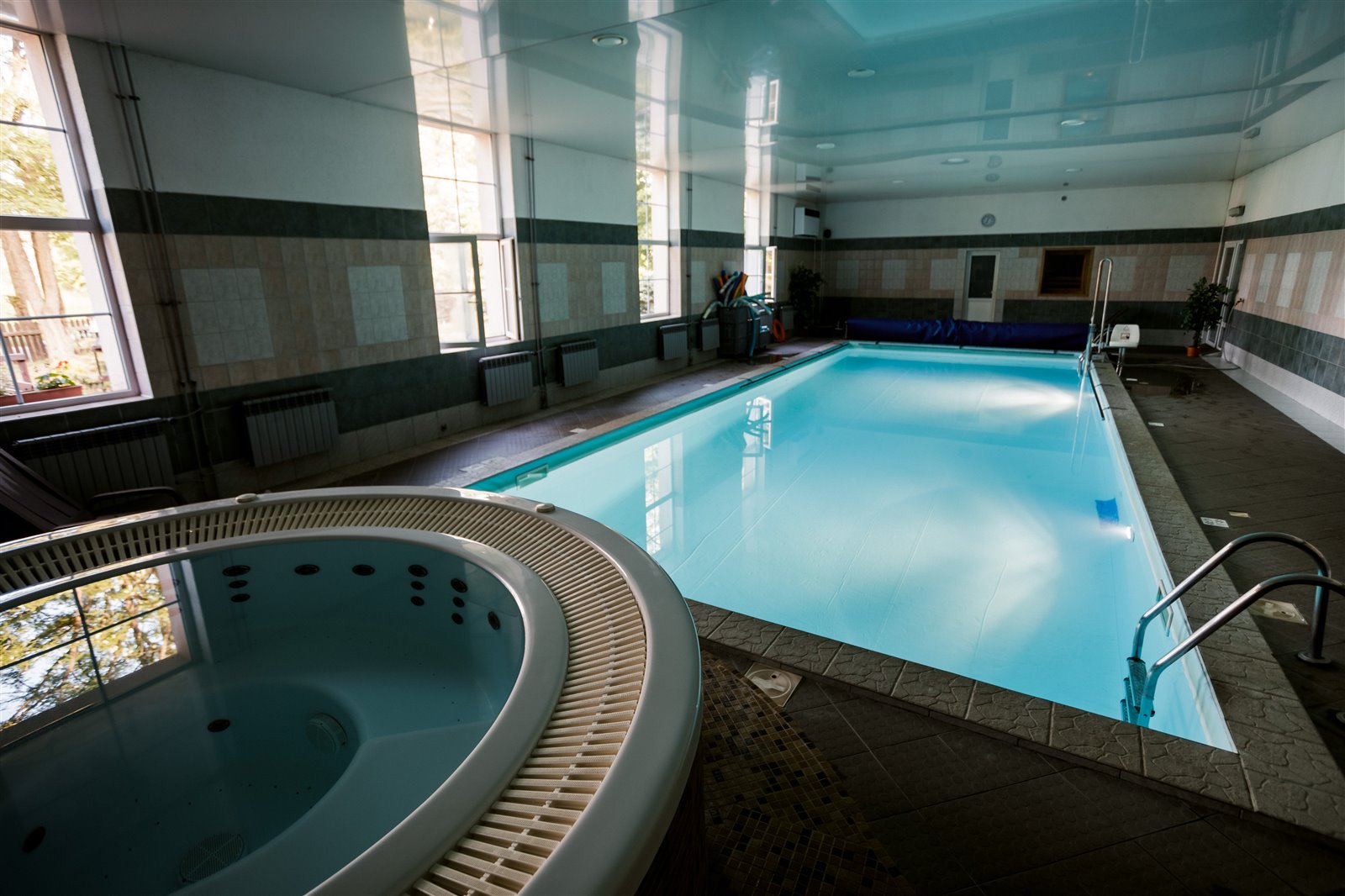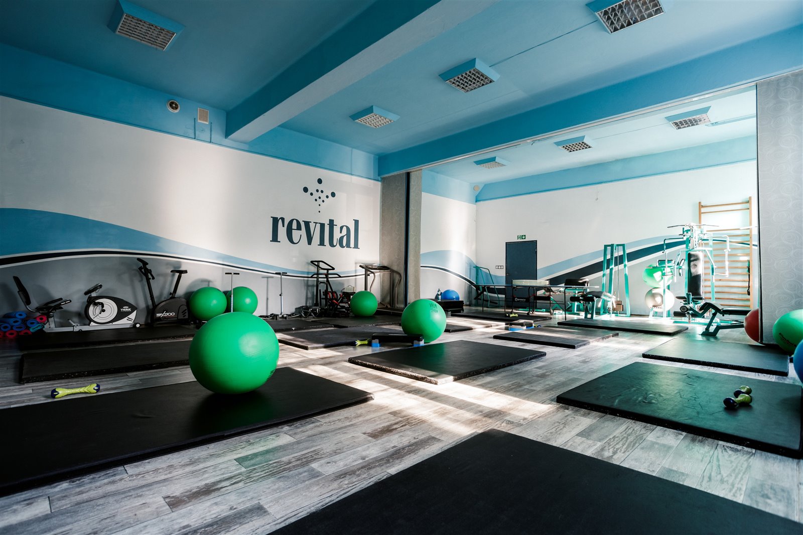 - na parterze zlokalizowane są gabinety fizykoterapeutyczne, basen wraz z zapleczem socjalnym, sauna, jacuzzi, sala gimnastyczna/konferencyjna, kawiarnia