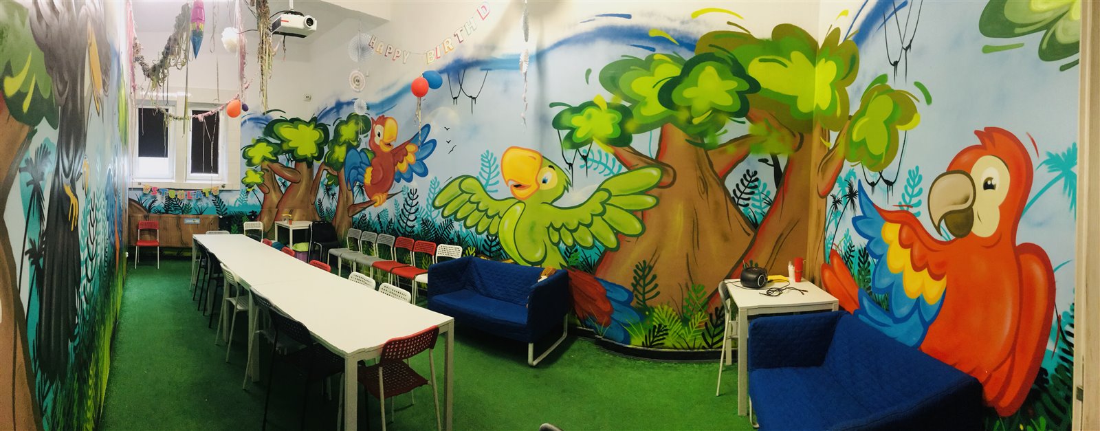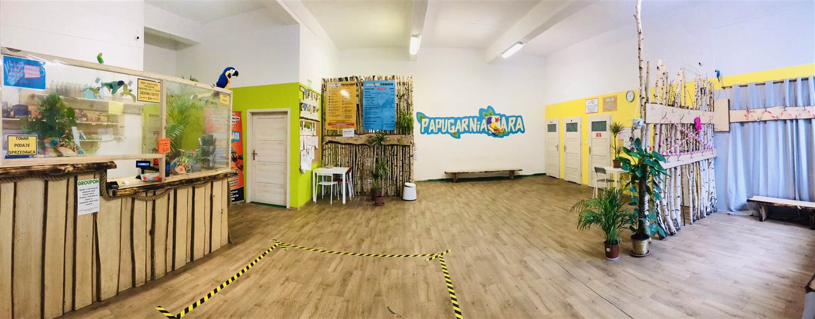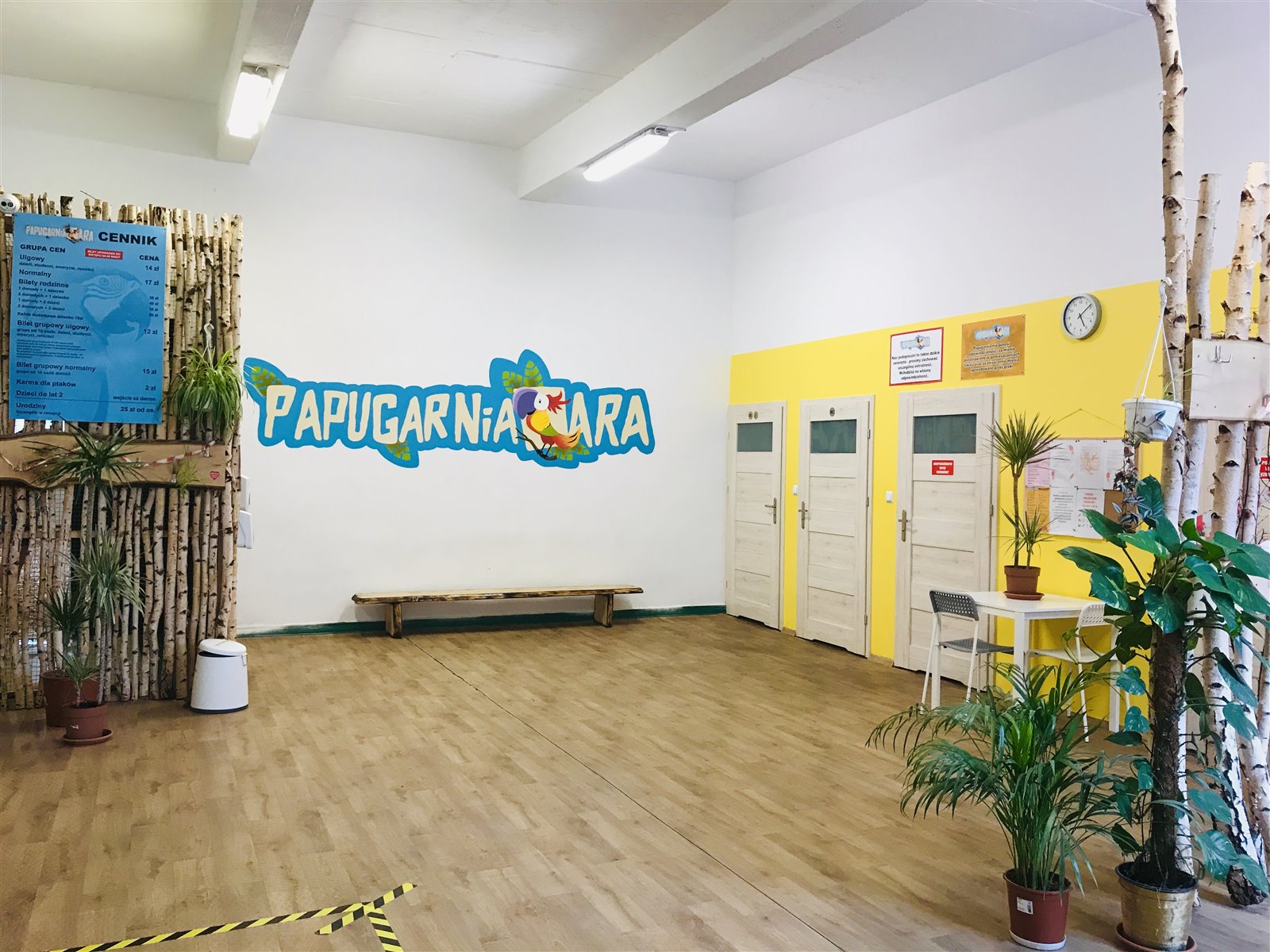 Dodatkowo papugarnia oferuje dwie sale urodzinowe, z których jedna wyposażona jest w projektor multimedialny i duży ekran projekcyjny. W salach tych organizowane są lekcje oraz warsztaty edukacyjne dla szkół i przedszkoli, co stanowi dodatkowe źródło dochodów.