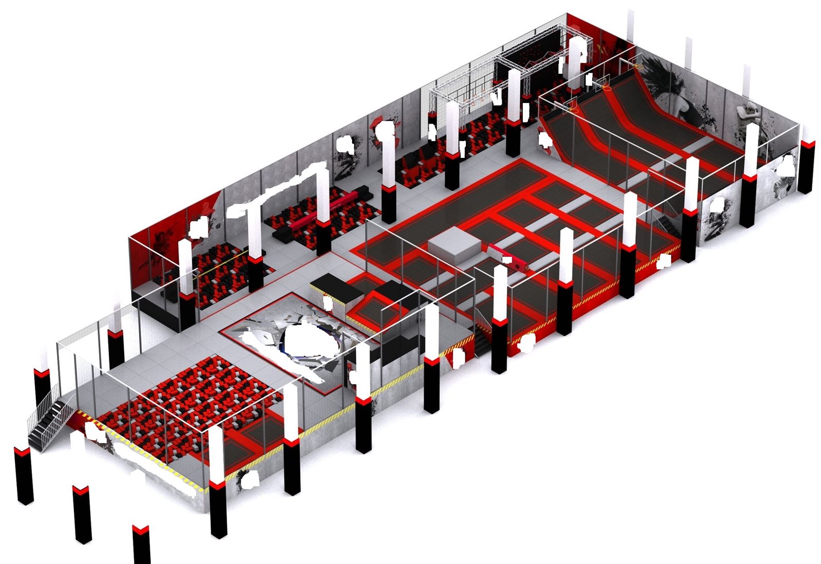 Trampoliny, wyposażenie szatni, kuchni, jadalni, sprzęt RTV i AGD, inny sprzęt wspierający prowadzenie parku trampolin
