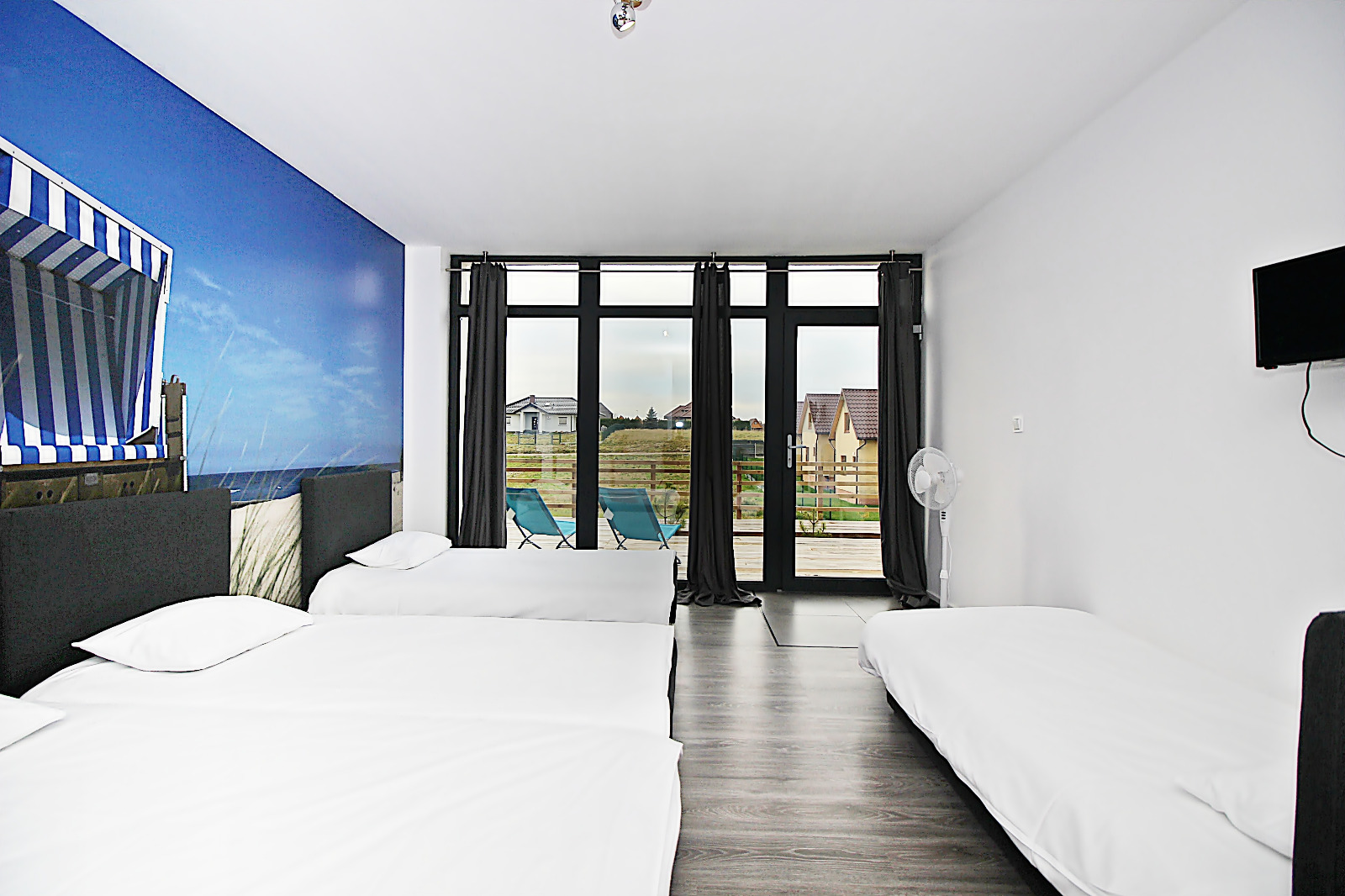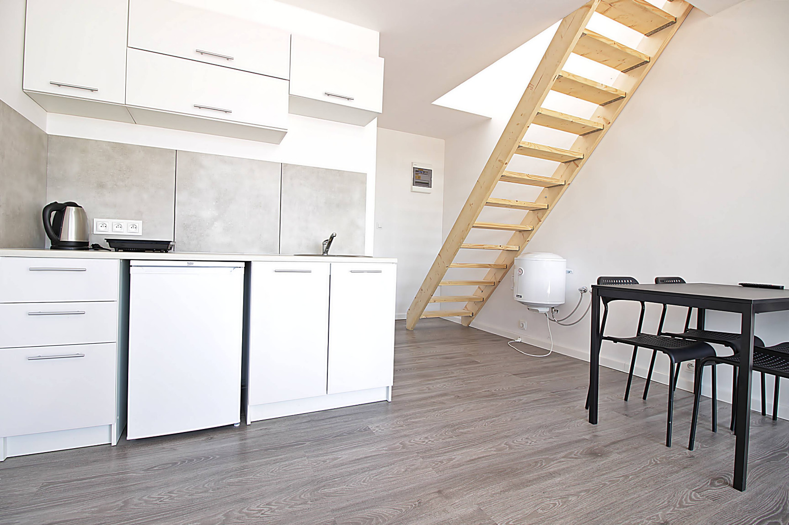 - 4 x Apartament - każdy o powierzchni 54 m2, dwupoziomowy z w pełni wyposażonym aneksem kuchennym i łazienką oraz sypialnią.