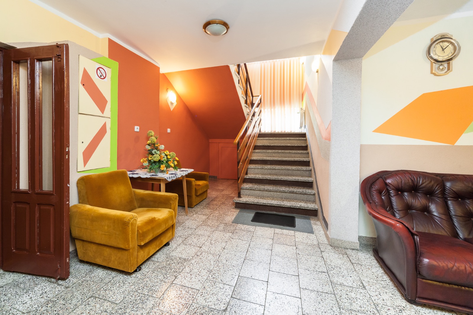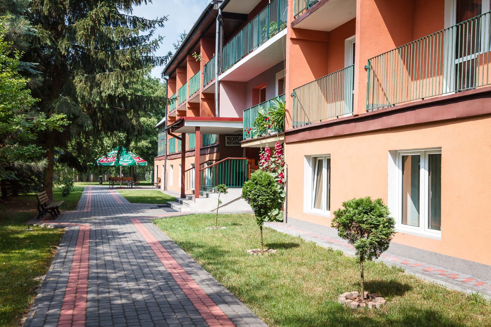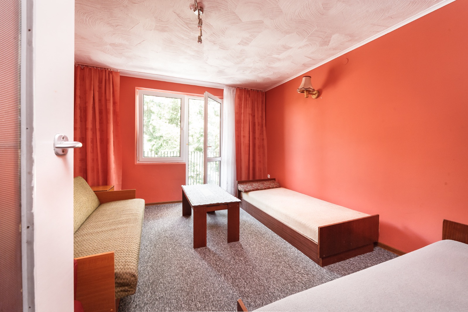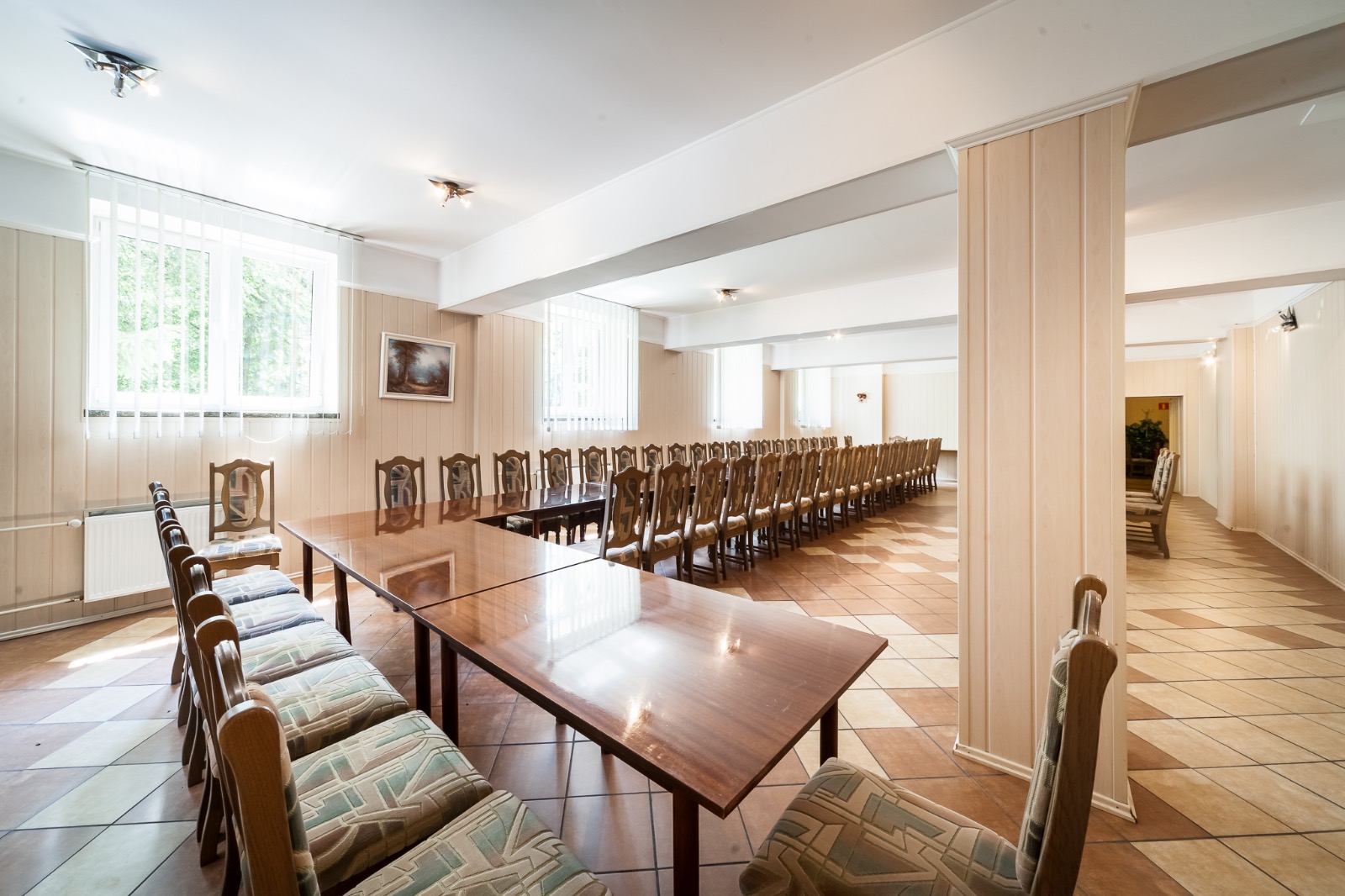 Na tym poziomie funkcjonuje także sala bankietowo-szkoleniowa o pow. 100m kw. z sanitariatami, które stanowią odrębny element oraz szatnia. Pierwsze i drugie piętro obłożone jest pokojami w liczbie 32, m.in. 2, 3, 4-osobowe z łazienkami, balkonami i pełnym węzłem sanitarnym, co daje możliwość zakwaterowania jednorazowo nawet 90 osób.
