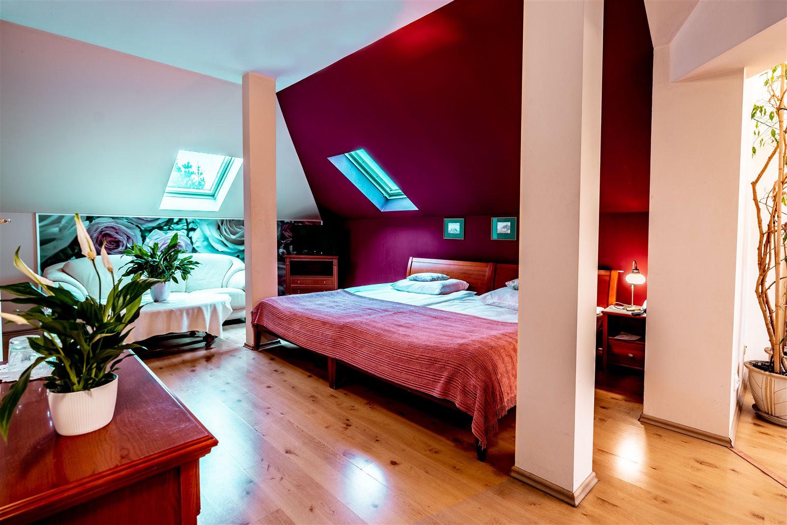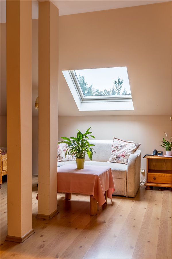 Luksusowy basen przelewowy w strefie rekreacyjnej (dezynfekowany bezchlorowo — tlenem aktywnym) i sauna tradycyjna. Kominek, który przyciągnie ciepłem w jesienno-zimowe dni. Dzięki oknom panoramicznym taras w okresie letnim może stanowić przedłużenie strefy dziennej.