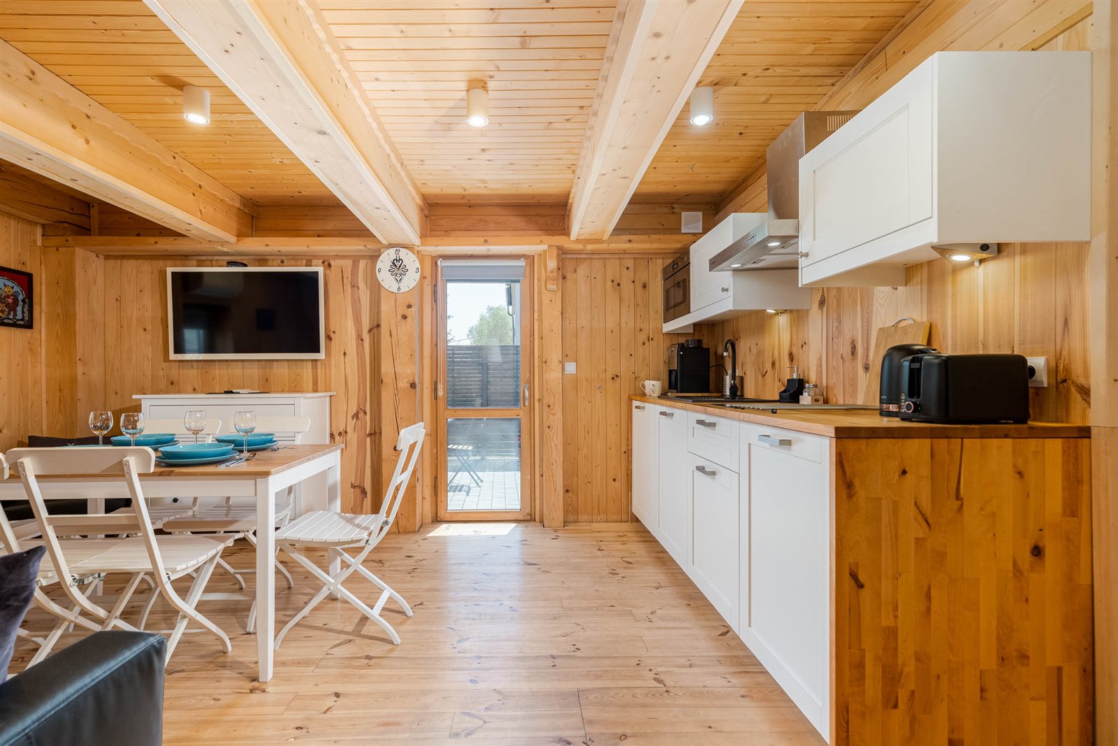 W budynku zostały wydzielone trzy w pełni wyposażone apartamenty - każdy apartament posiada własną klimatyzację, aneks kuchenny i łazienkę oraz taras z grillem.