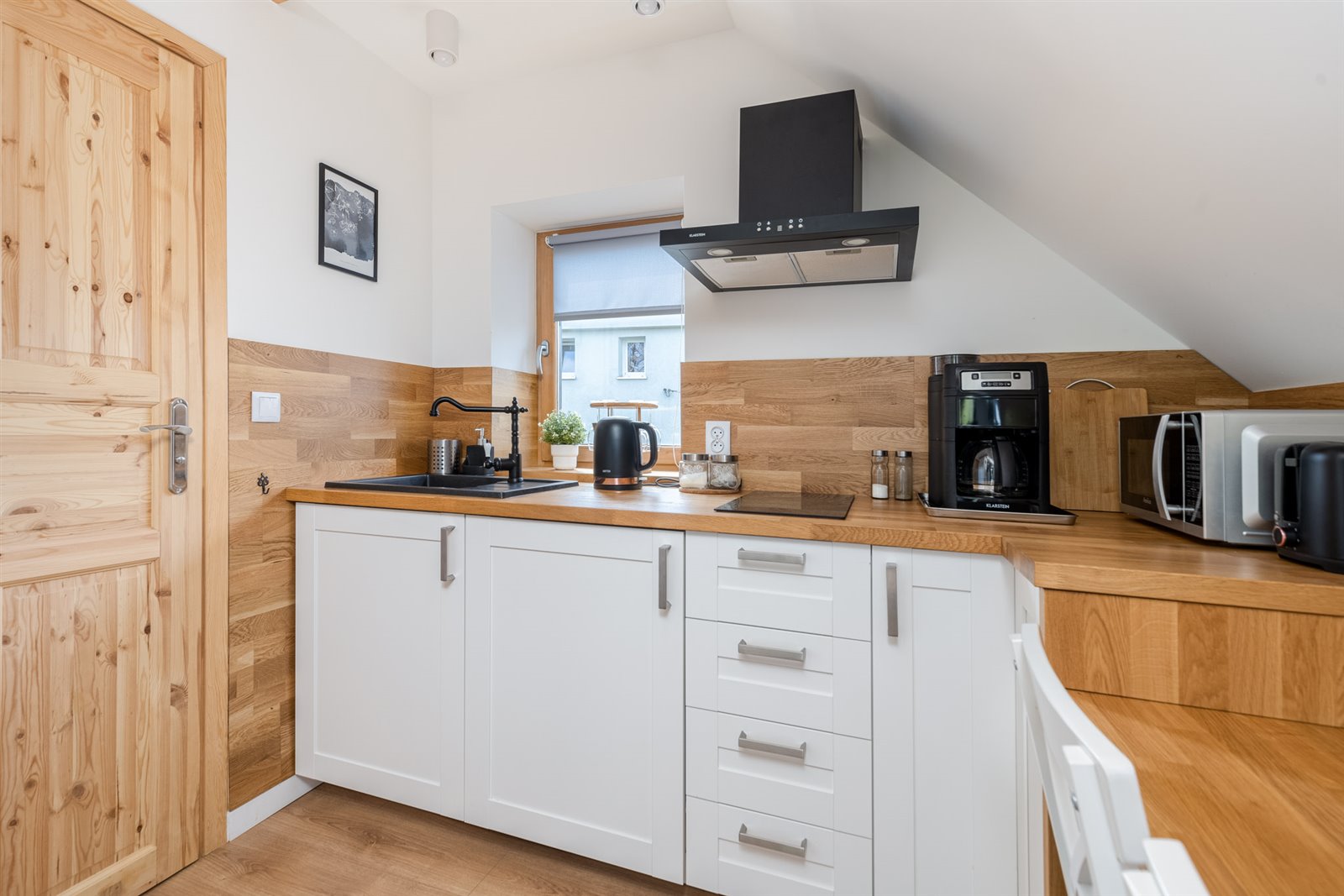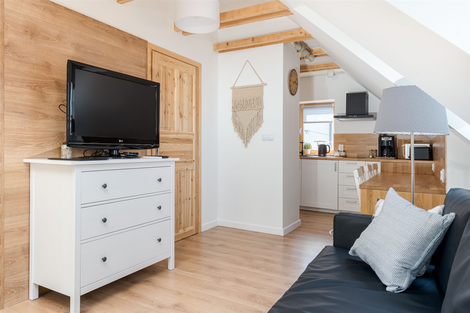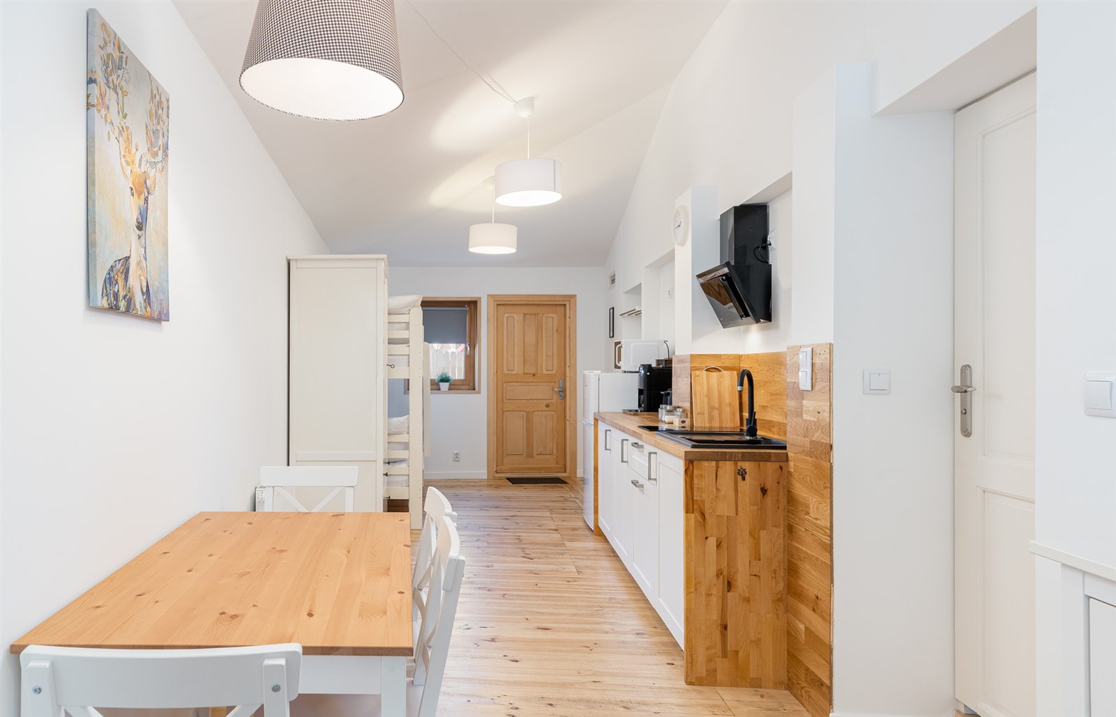 Do każdego apartamentu prowadzi osobne wejście i zamkiem na kod (co pozwala na samodzielny, bezproblemowy meldunek gości).