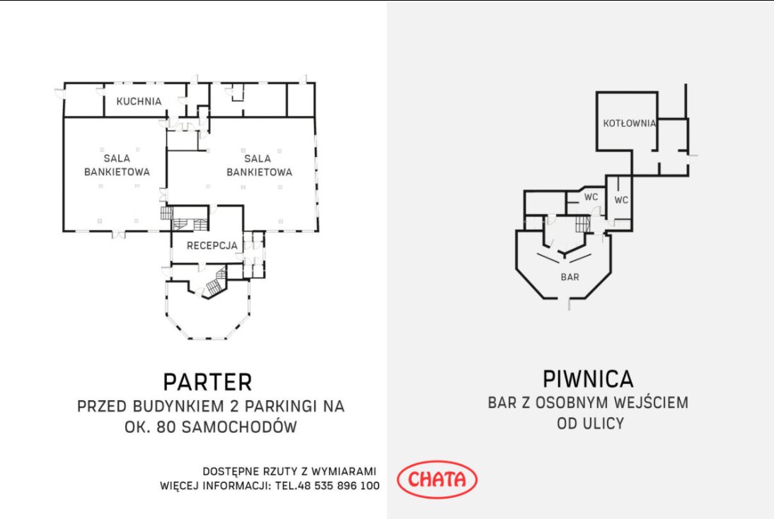 W obiekcie znajdują się 2 duże sale balowe na około 150 osób , każda z nich oraz Bar.