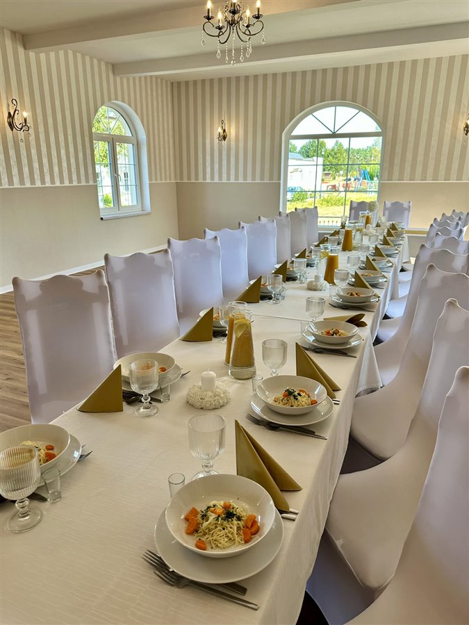 • Dwie sale bankietowe/restauracyjne na około 100 miejsc z pełnym zapleczem kuchennym
