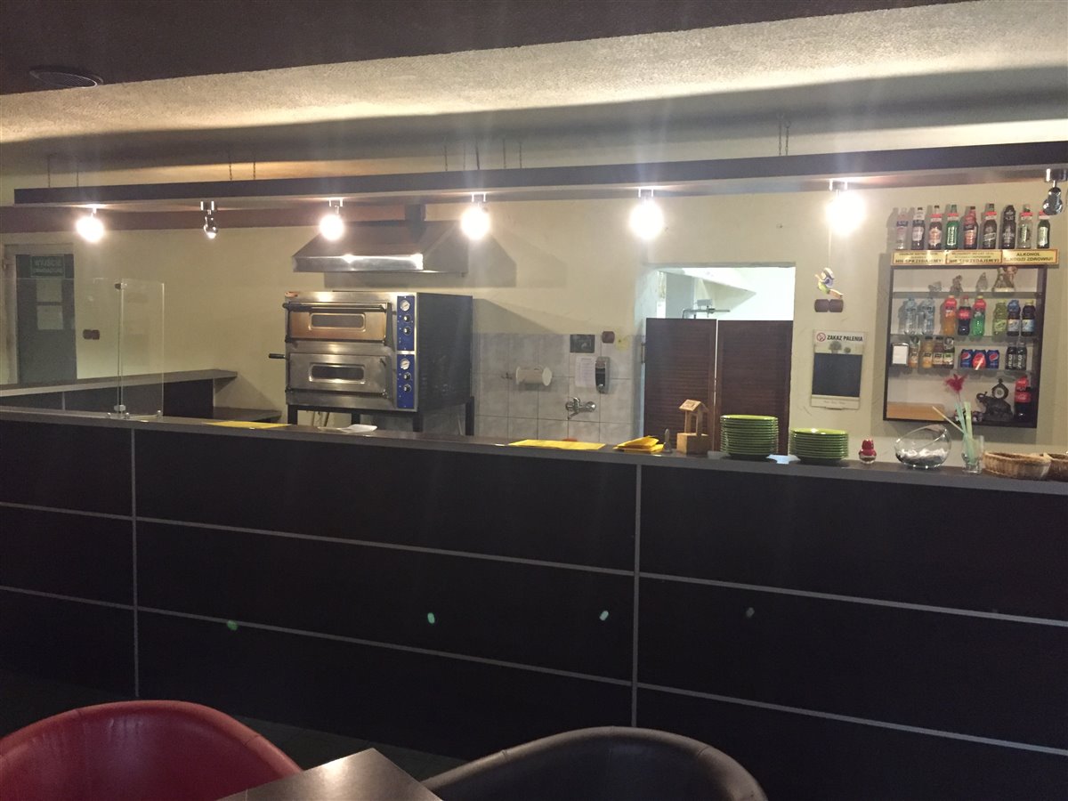 Piec dwukomorowy,Stojak do pieca, Grill kontaktowy, Frytkownica podwójna, Gyros gazowy do kebaba, ( wszystkie meble), telewizor , zmywarko- wyparzarka do mycia, wszystkie akcesoria kuchenne ( talerze,noże itp.), mieszarka spiralna, lodówki i zamrażarki,