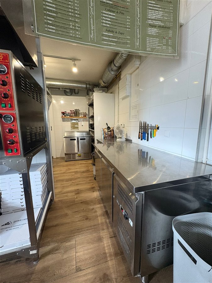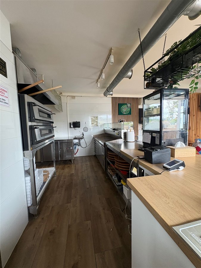 • Profesjonalne wyposażenie kuchni: piec do pizzy z okapem, lodówki, stoły robocze ze stali nierdzewnej, zmywarka gastronomiczna, baseny gastronomiczne (głębokie) z baterią, zmiękczacz do wody oraz pozostały drobny sprzęt,