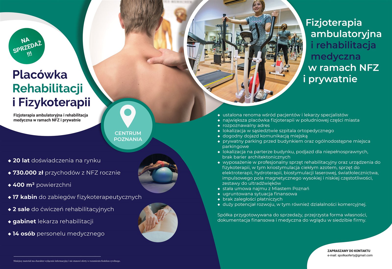 Sprzedam Placówkę rehabilitacji i fizykoterapii zlokalizowaną w centrum Poznania.