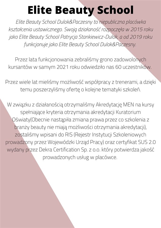 funkcjonuje jako Elite Beauty School Dulok&Paczesny.