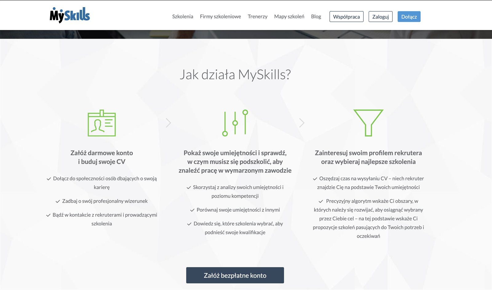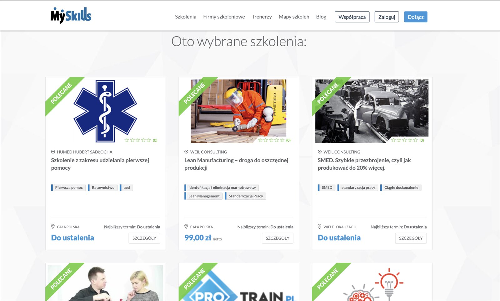 • Prezentacja ofert szkoleń – Zamiast standardowych opisów, portal eksponuje korzyści i umiejętności, które użytkownik zdobędzie dzięki szkoleniom, co pomaga w bardziej świadomym wyborze