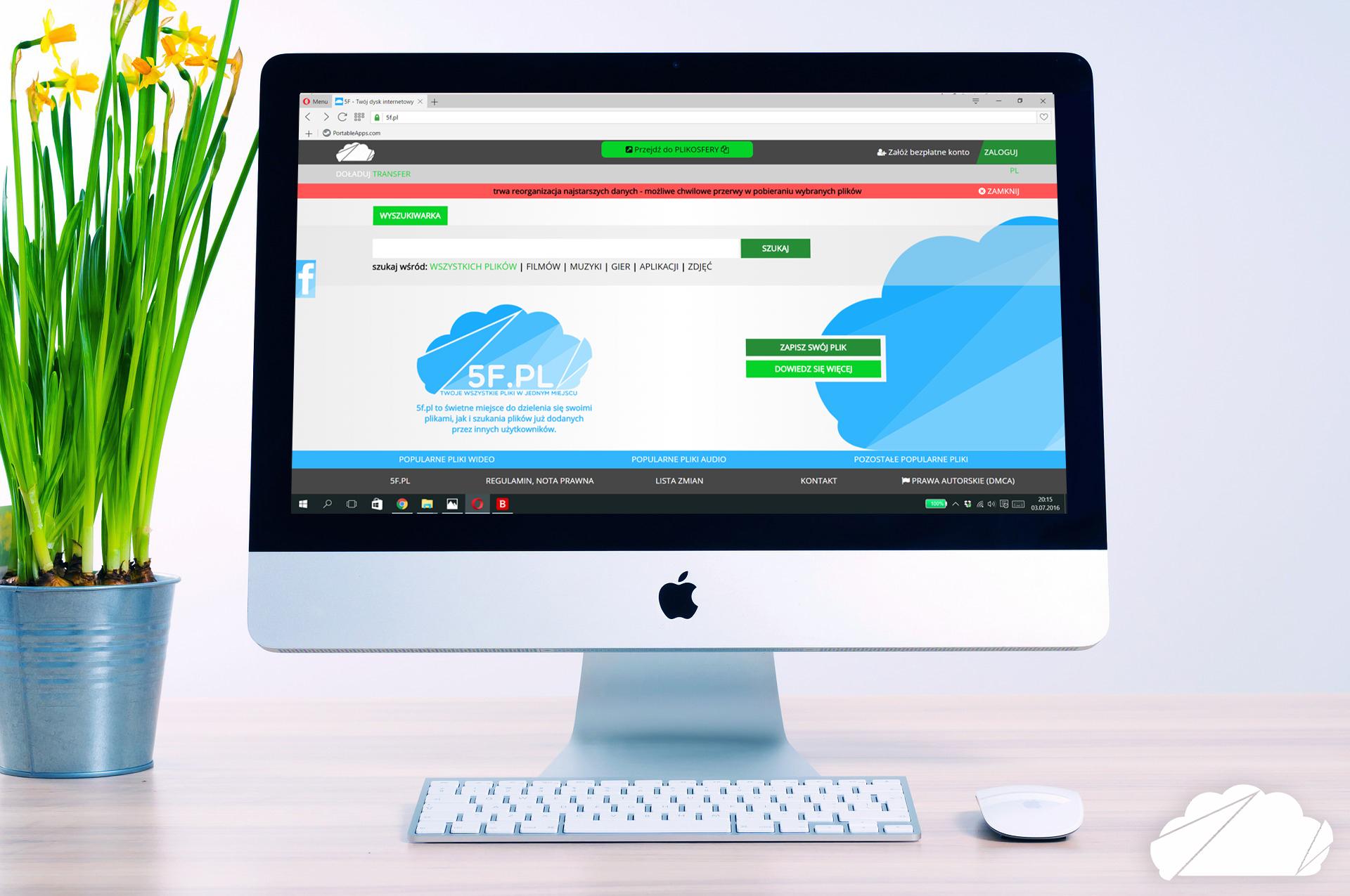 5f jest dyskiem internetowym pozwalającym użytkownikom dodawanie swoich plików i dzielenie się nimi ze znajomymi czy innymi użytkownikami portalu. Portal istnieje od 7 lat i cały czas jest prowadzony w formie spółki z o.o.
