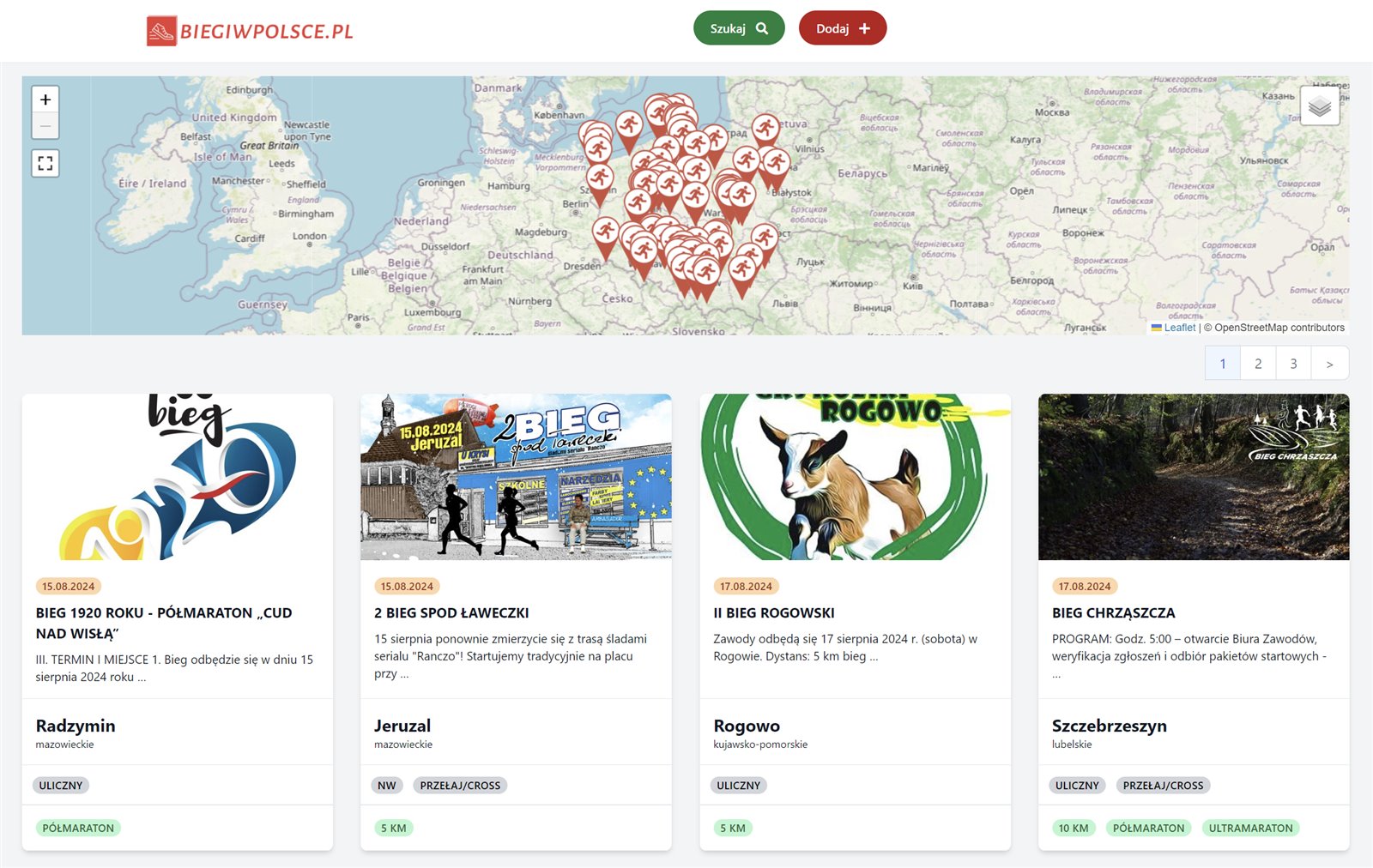 - Ogólnodostępna wyszukiwarka biegów – zaawansowana wyszukiwarka pozwala na przeszukiwanie biegów po frazie, mieście, województwie, kategorii oraz dacie zawodów.