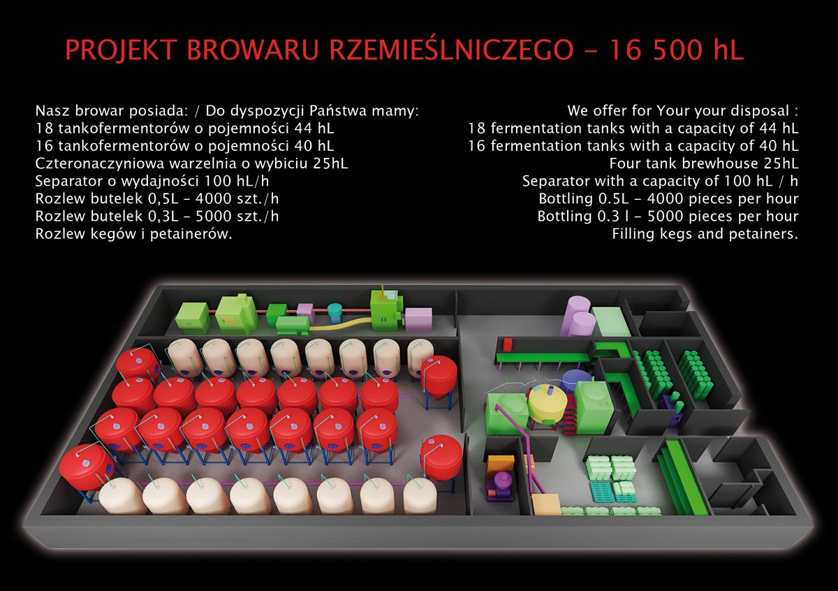 Firma z całym zapleczem technicznym , kompletnie wyposażony Browar Rzemieślniczy o wydajności 16 500 HL , wszystkie maszyny konfekcyjne , pasteryzacja , etc ,