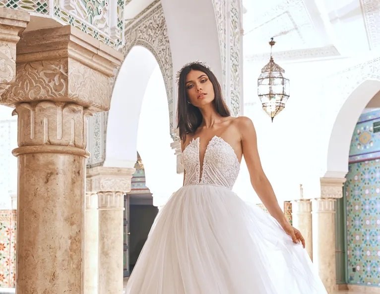 Towar zawierający kolekcję ślubną, wieczorową oraz dodatki (biżuteria itp.) W ofercie także logo firmy oraz strona www z najlepszym możliwym adresem.