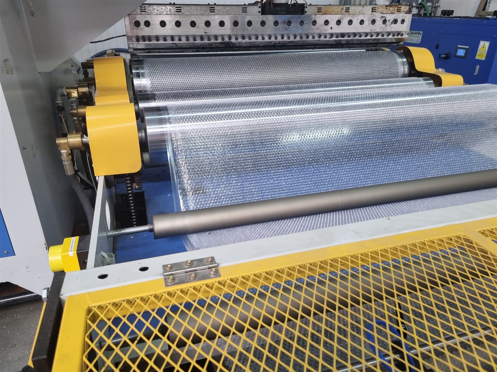 2. Maszyna do produkcji folii bąbelkowej: dwa extrudery, szerokość produkcji do 1500 mm, co zapewnia wysoką efektywność produkcyjną oraz możliwość produkcji folii o różnych wymiarach.