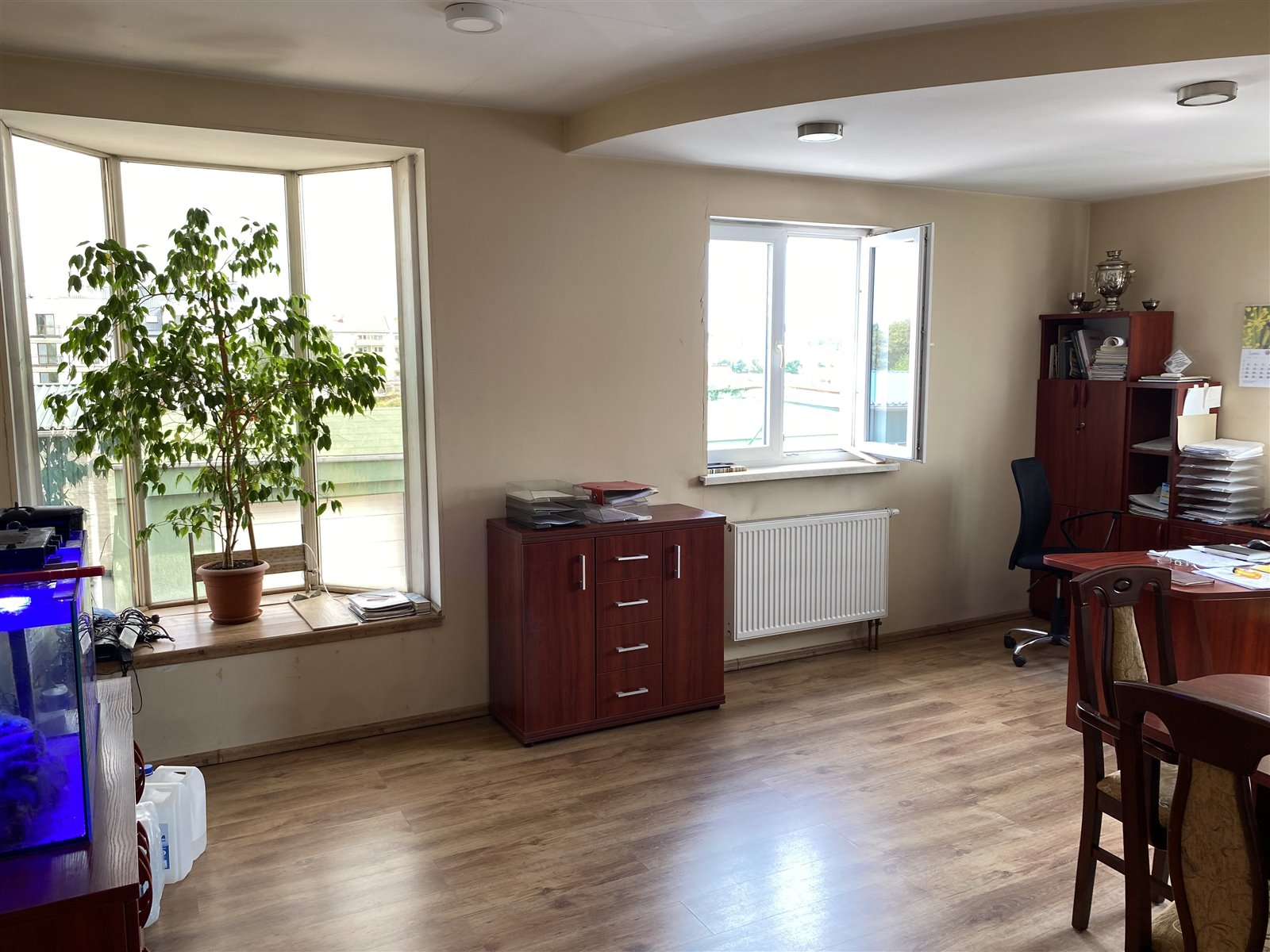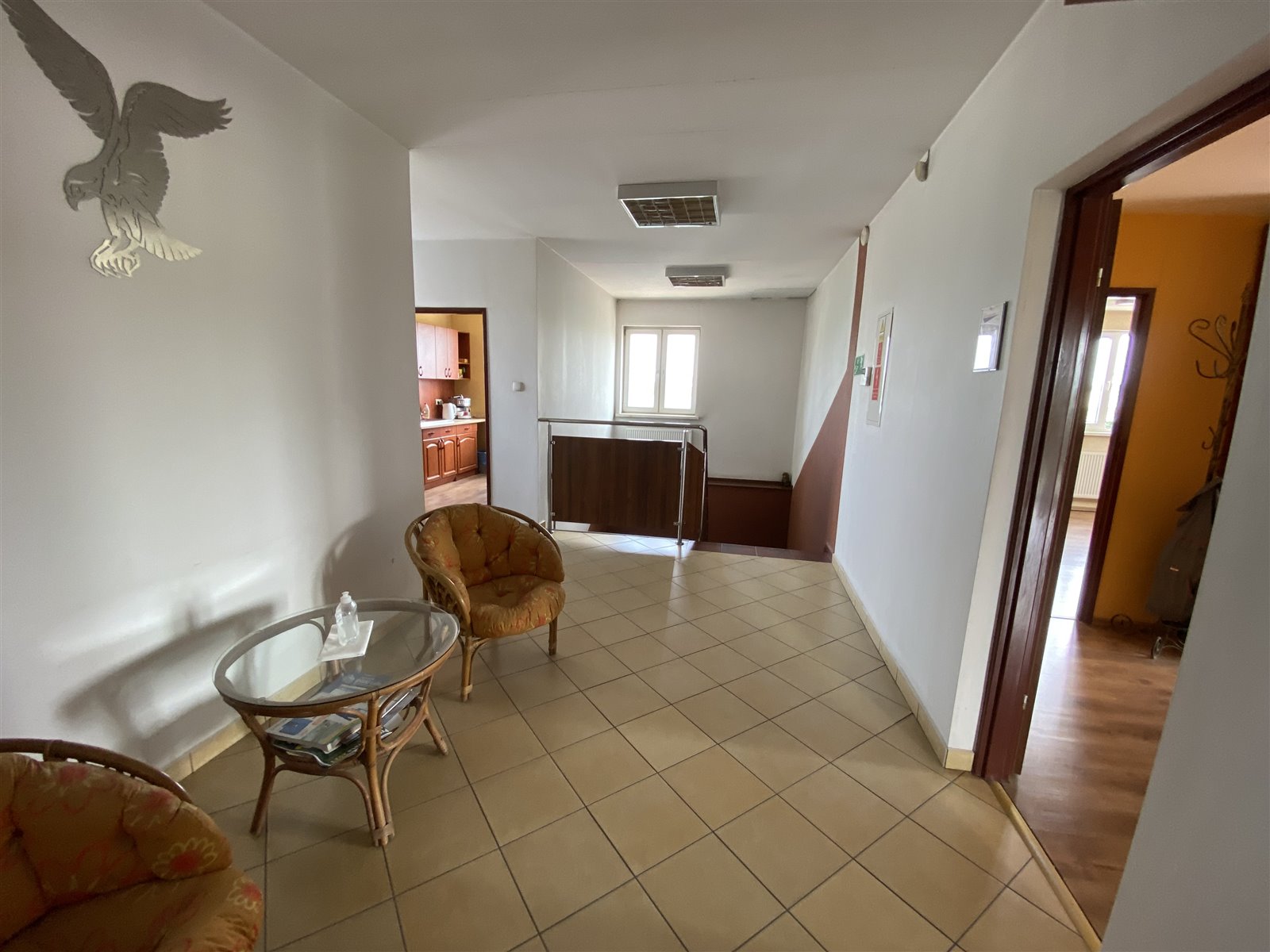 4 pomieszczeń biurowych, przedpokoju, 2 wc, kuchni oraz pomieszczenia technicznego.