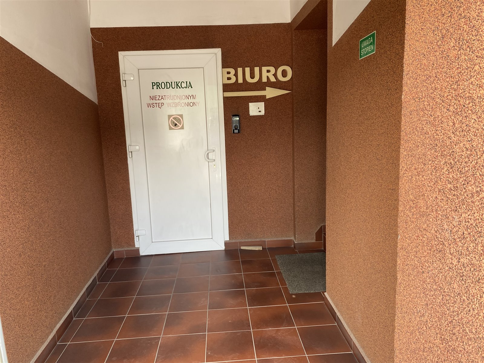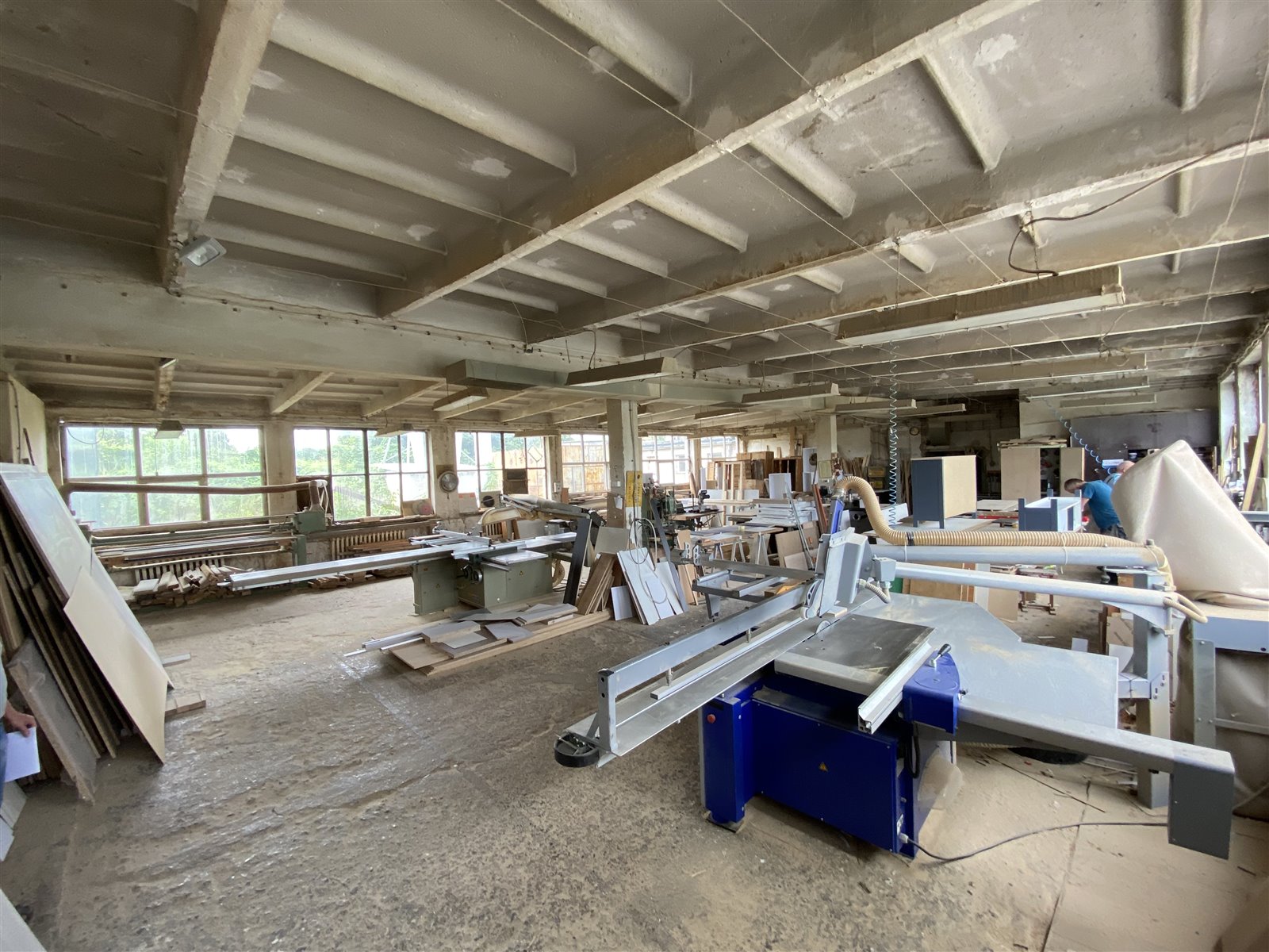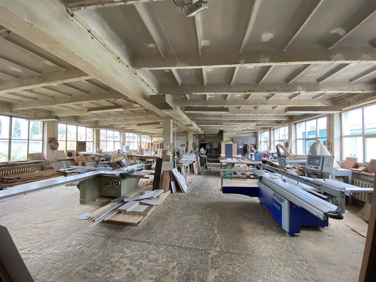 3 magazyny, 2 pomieszczenia produkcyjne, ślusarnia, okleiniarnia, archiwum, toaleta, szatnia, stołówka oraz kuchnia,