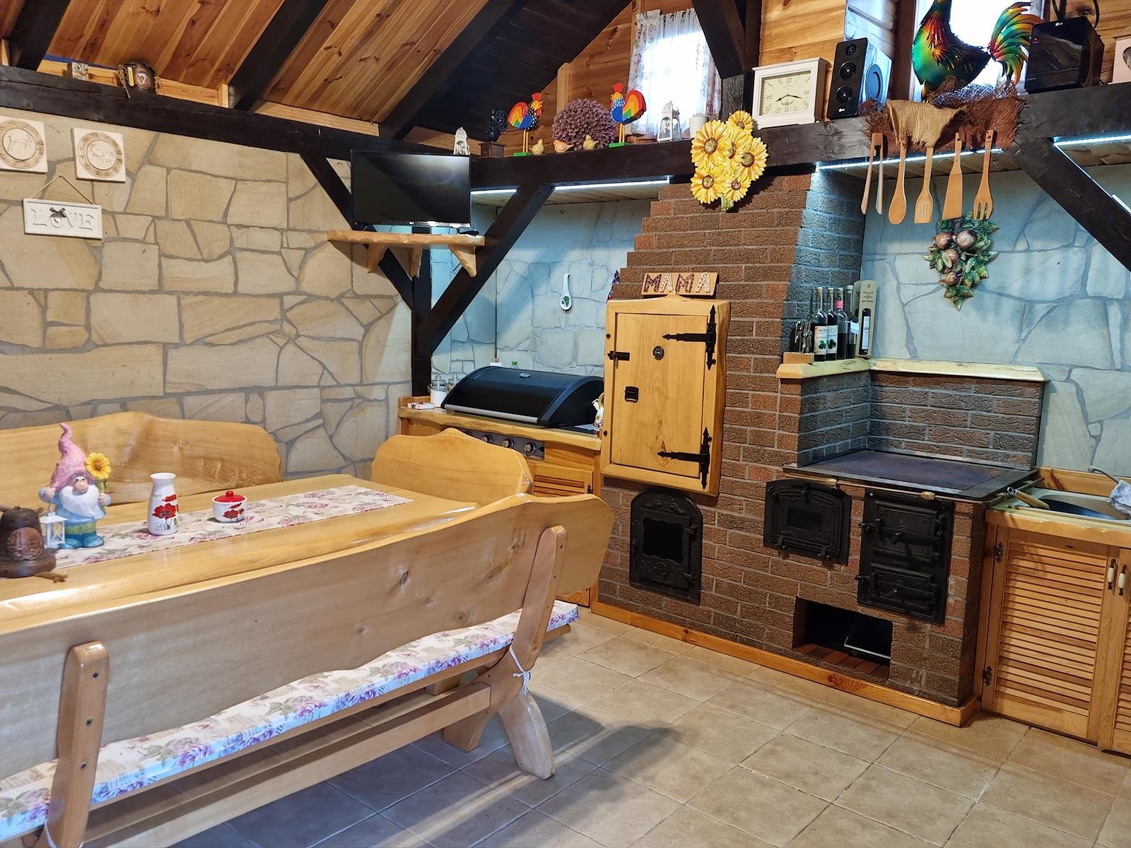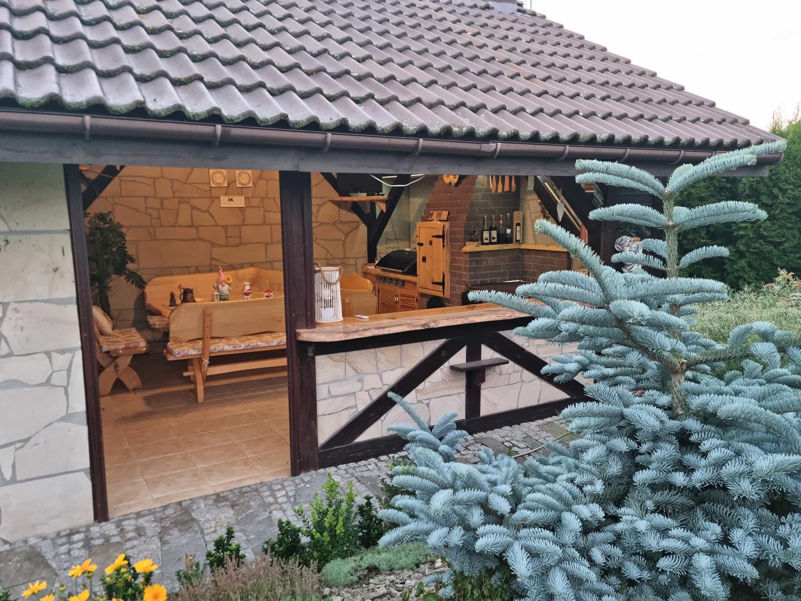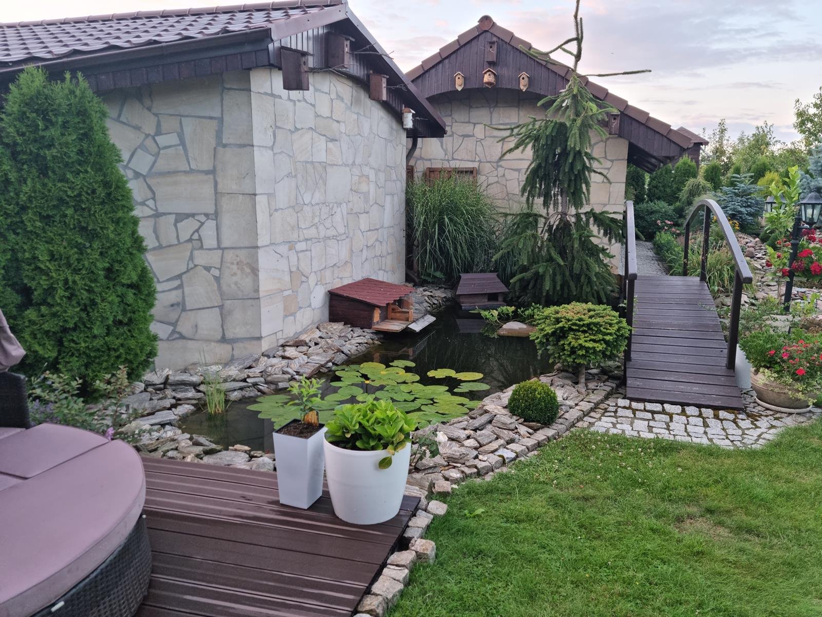 - budynek mieszkalny wraz z wyposażeniem i oranżerią ( ogród zimowy), budynek gospodarczy ( kuchnia letnia + pokój gościnny) wiata na trzy samochody.
