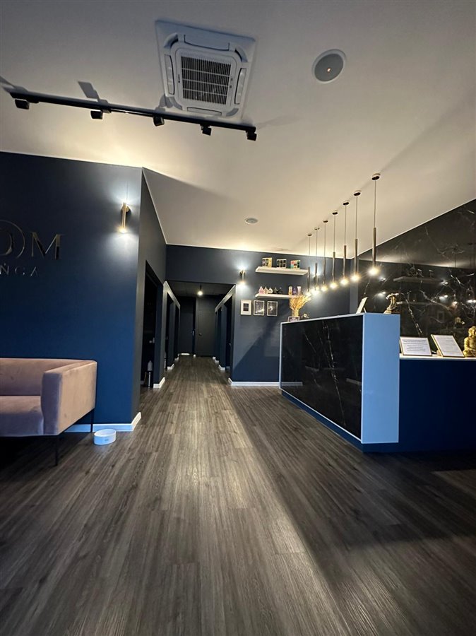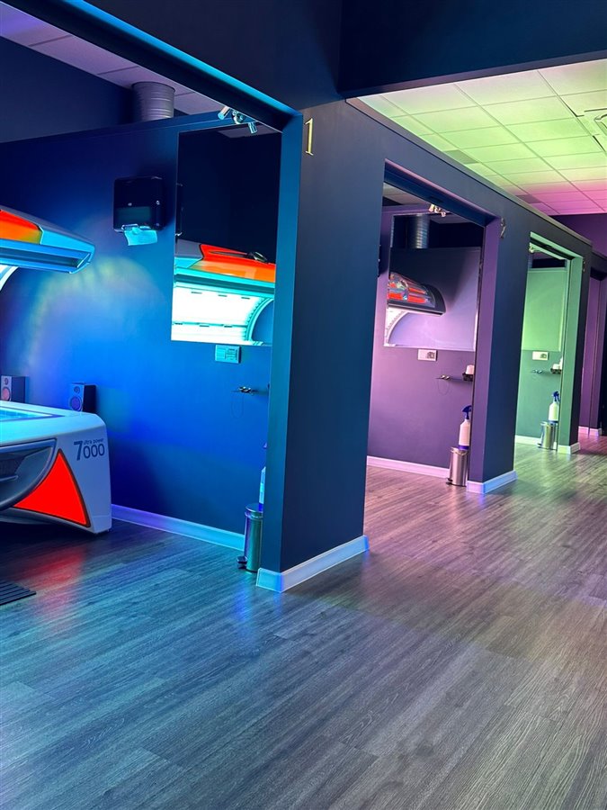 Studio stworzone od zera w roku 2021 w lokalu wynajmowanym 100 m2 (czynsz ok. 7000 brutto zł/mc wraz ze zużyciem prądu z instalacji PV) ze stanu surowego. Przystosowane dla 7 urządzeń opalających - obecnie zaadaptowane jest 6 kabin z możliwością doposażenia w jeszcze jedno urządzenie stojące.