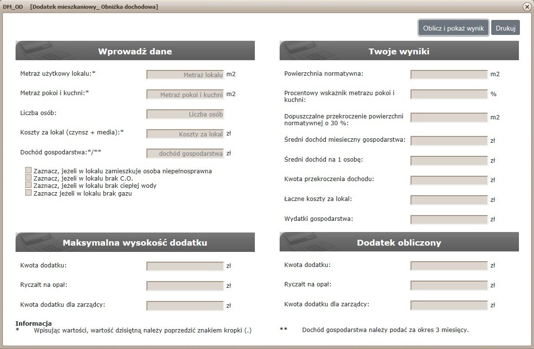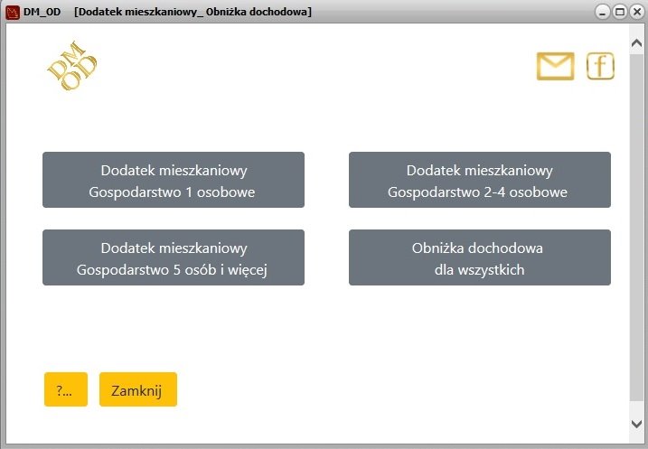 Sprzedam projekt mojego autorstwa kalkulator do obliczeń dodatku mieszkaniowego i obniżki dochodowej, które stanowią pomoc mieszkaniową. Kody powstały w oparciu o stosowne ustawy.