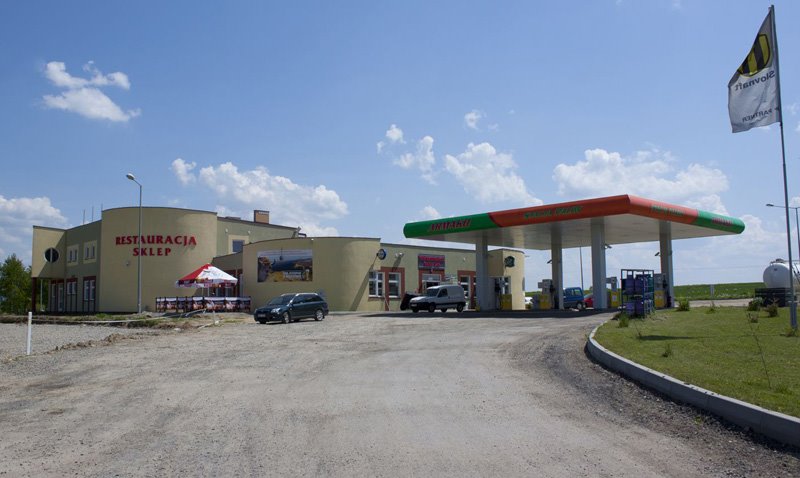 Na stacji benzynowej znajdują się trzy dystrybutory sześciowężowe oraz jeden LPG, z zadaszeniem na konstrukcji stalowej. Stacja Paliw rozpoczęła działalność w roku 2009 i od początku swojej działalności stacja jest partnerem firmy Slovnaft. Na terenie nieruchomości dodatkowo znajdziemy parking dla samochodów osobowych, ciężarowych oraz autokarów. W głównym budynku stacji znajduje się całodobowa przestrzeń handlowa ( "Nasz sklep" ) wyposażona w regały oraz szafy chłodnicze.