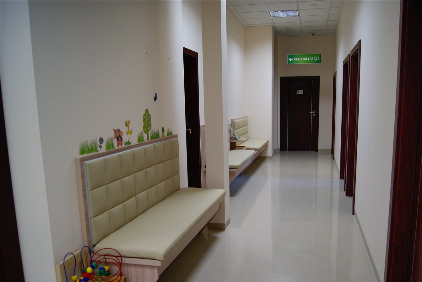 • Wyposażenie, m.in. aparat USG, EEG/EMG, holtery EKG i ABPM, zestaw prób wysiłkowych, KTG, kolposkop, aparat do kriodestrukcji, wyposażenie rehabilitacji (m.in. magnetoterapia, elektroterapia, ultradźwięki, laseroterapia, krioterapia), kompleksowy sprzęt komputerowy z własnym serwerem, klimatyzacja, estetyczne wykończenie wnętrz i wyposażenie.