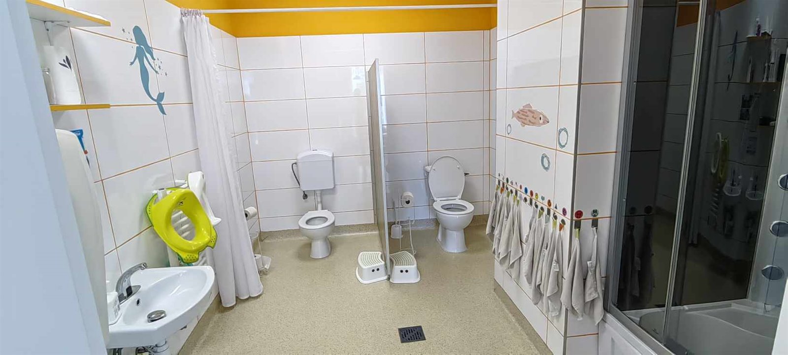 Lokal 94 m2, odebrany przez sanepid dla grupy 23 dzieci. Składa się z dużej sali (64,5 m2), łazienki (2 umywalki, 2 ustępy, prysznic), szatni, kuchni do wydawania posiłków, pomieszczenia socjalnego oraz magazynku.