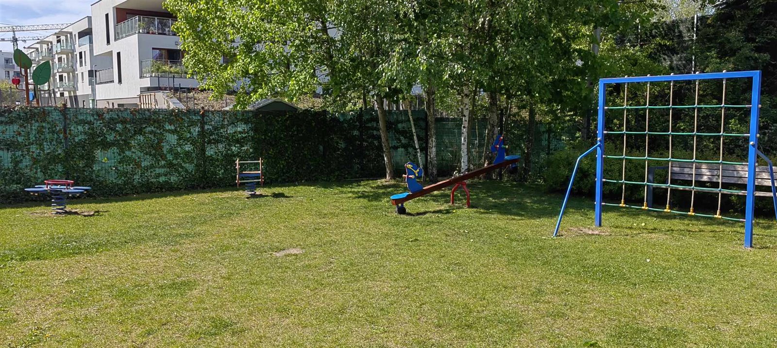 - własny, zielony plac zabaw (przeplotnia, konik oraz 2 bujanki),