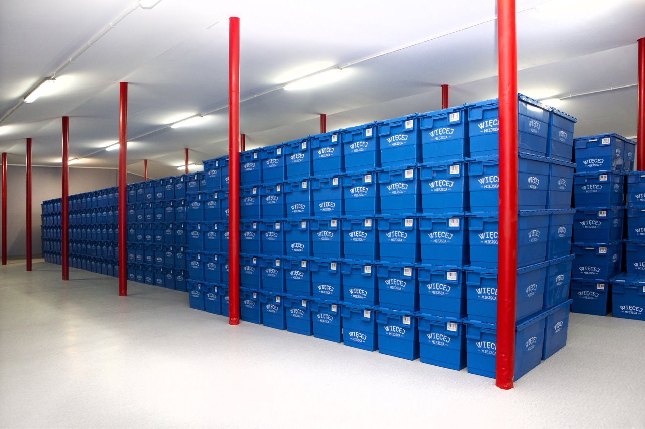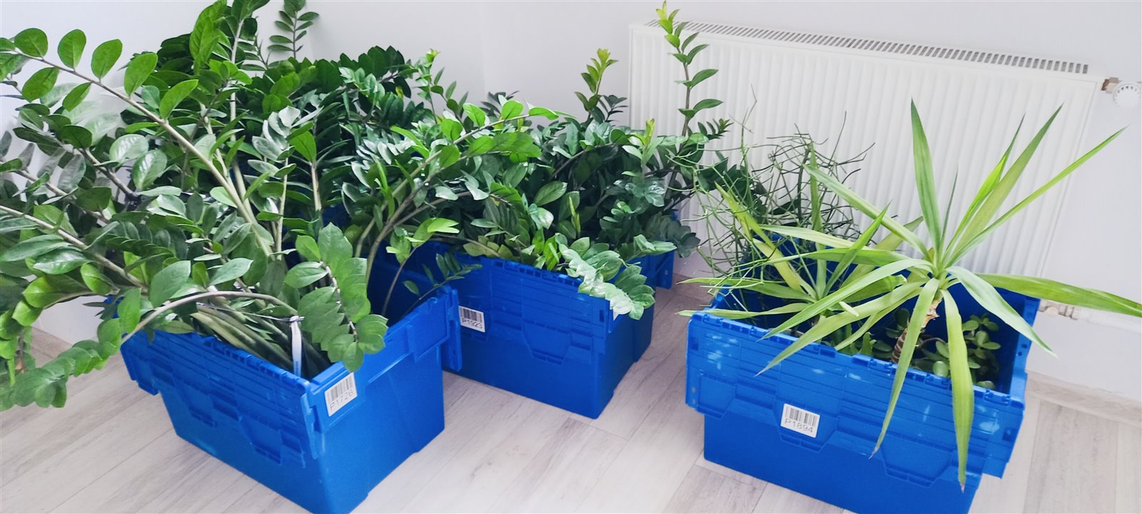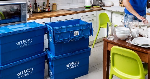 Ponad 1500 sztuk wytrzymałych, ekologicznych pojemników z tworzywa sztucznego – idealna alternatywa dla kartonów podczas przeprowadzek i remontów.