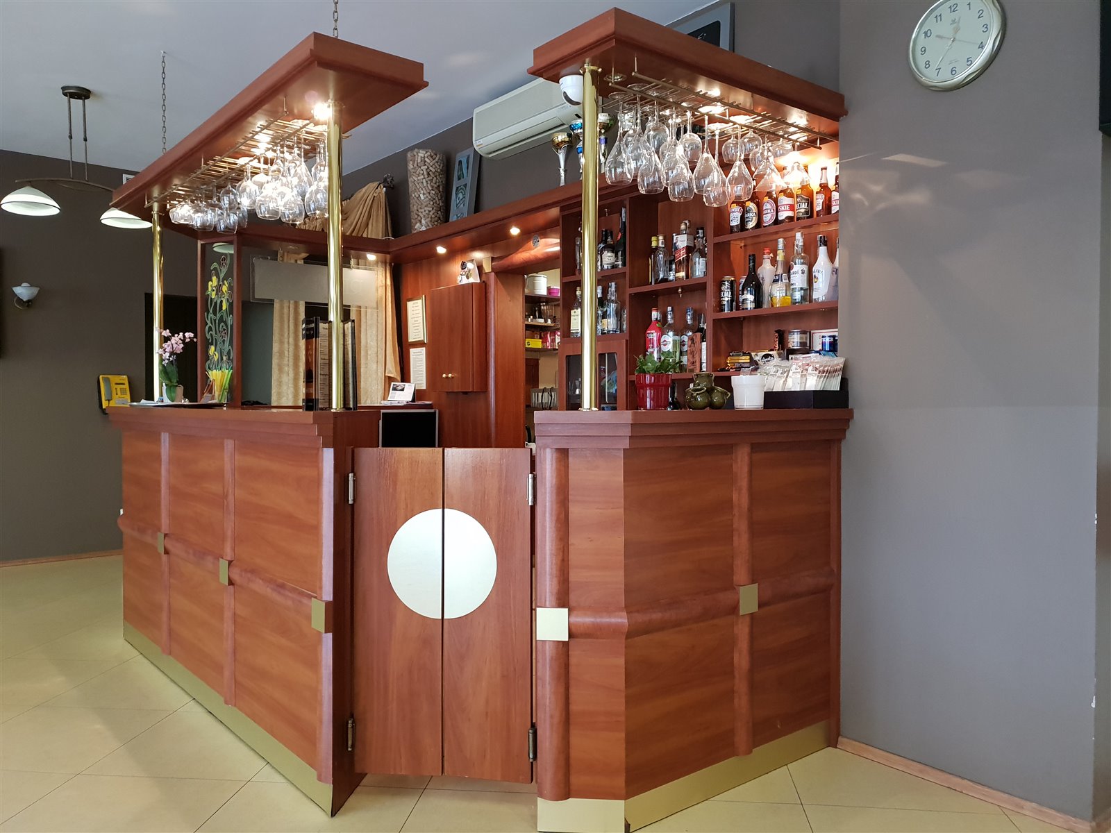 Restauracja mieści się na głównym piętrze budynku hotelowego, składa się z przestronnej kuchni z zapleczem 90m2 w pełni wyposażonej w sprzet wysokiej jakości, spełniający wymogi gastronomiczne, sali głównej restauracyjnej 160m2, sali kominkowej 90m2, sali tanecznej 100m2, szatni, toalet, oraz magazynu.Całość dostosowana do potrzeb personelu jak i wygód klientów.