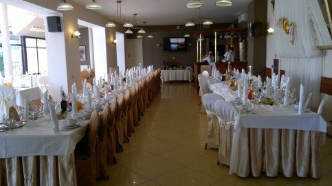 Restauracja mieści się na głównym piętrze budynku hotelowego, składa się z przestronnej kuchni z zapleczem 90m2 w pełni wyposażonej w sprzęt wysokiej jakości, spełniający wymogi gastronomiczne, sali głównej restauracyjnej 160m2, sali kominkowej 90m2, sali tanecznej 100m2, szatni, toalet, oraz magazynu.Całość dostosowana do potrzeb personelu jak i wygód klientów.