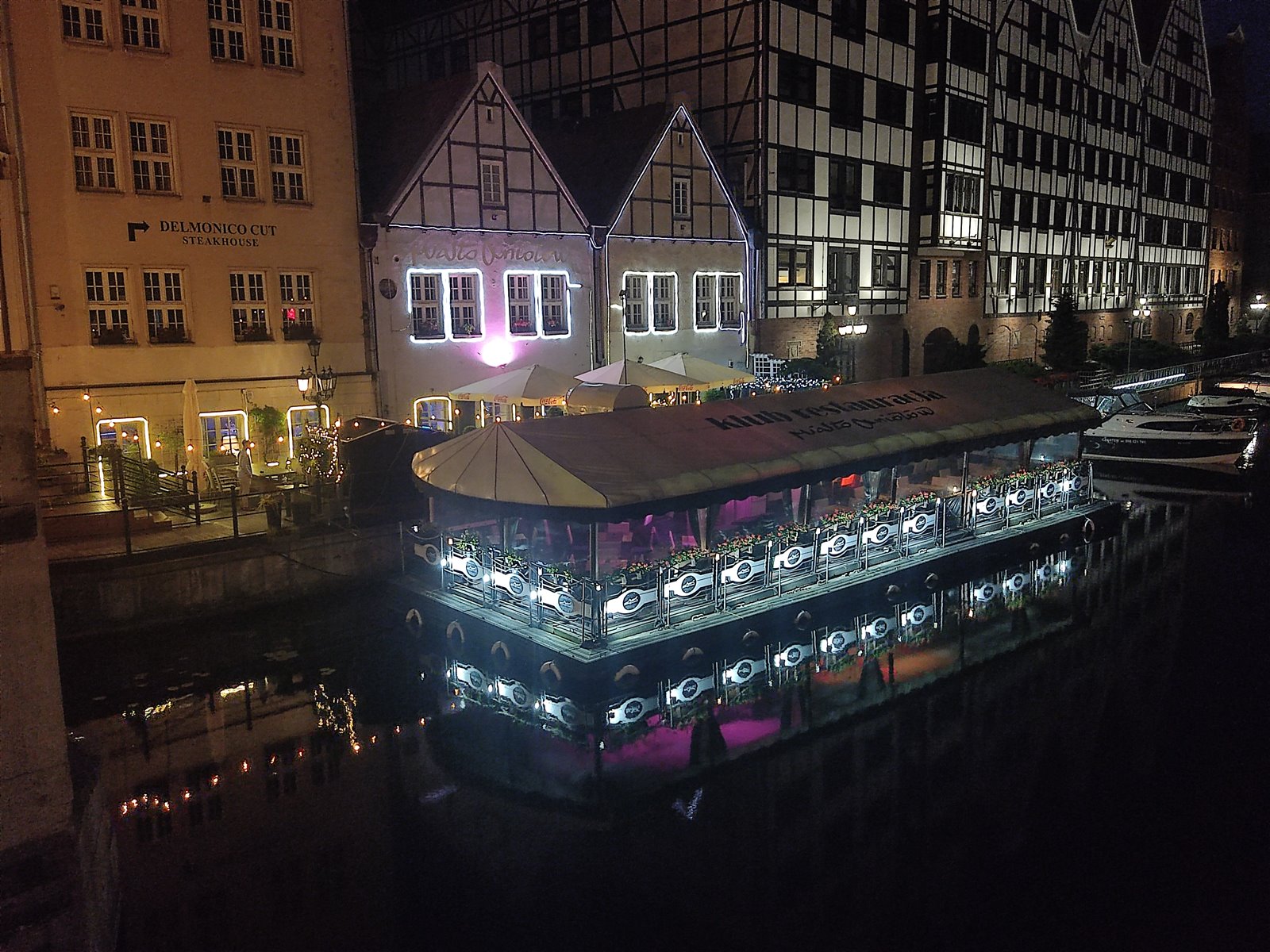 - 100 m² barki restauracyjnej przycumowanej do nabrzeża.