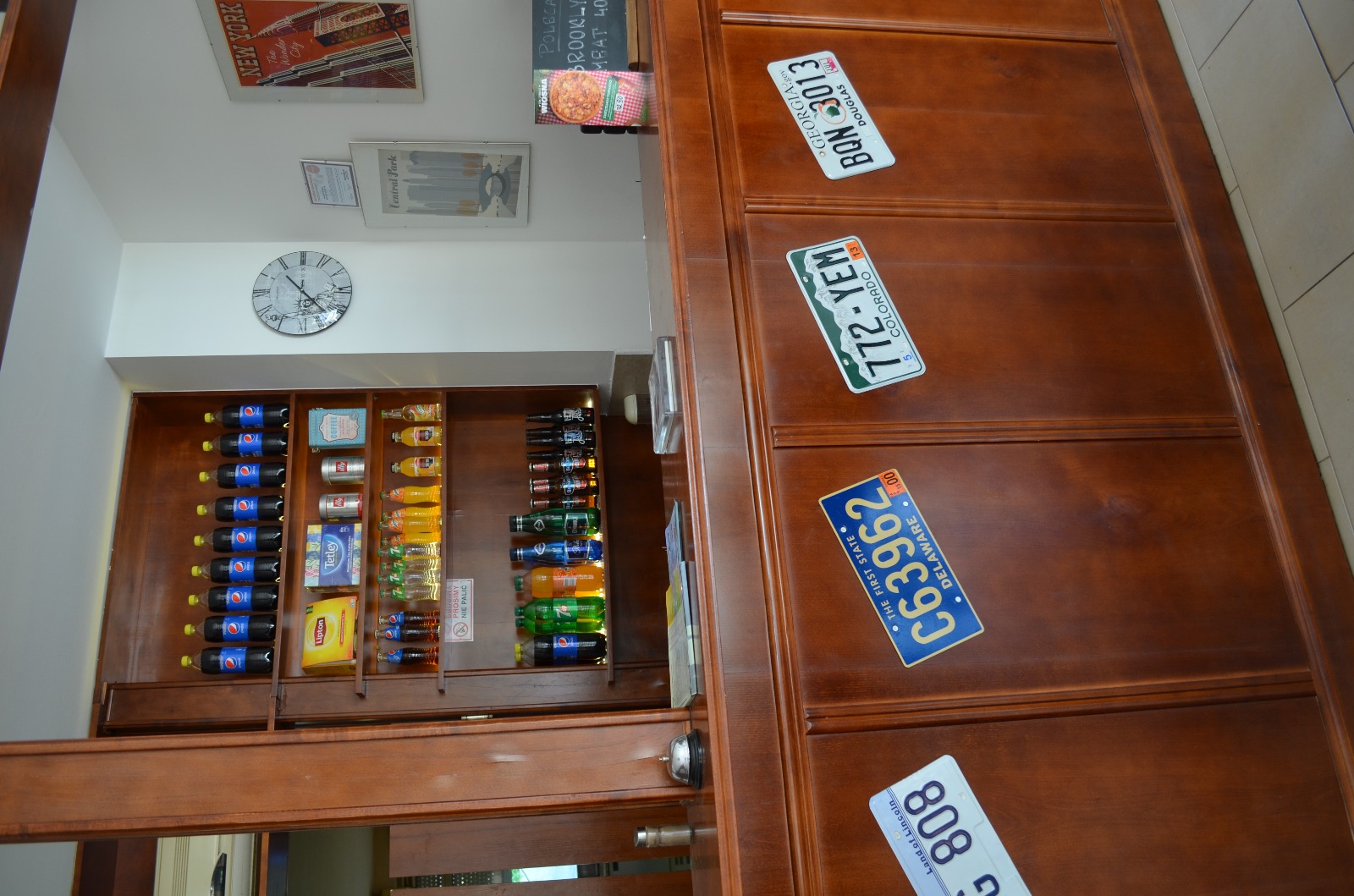 - zastawa: sztućce, kubki, filiżanki, szklanki, talerze, tace drewniane do podawania pizzy, garnki, patelnie
