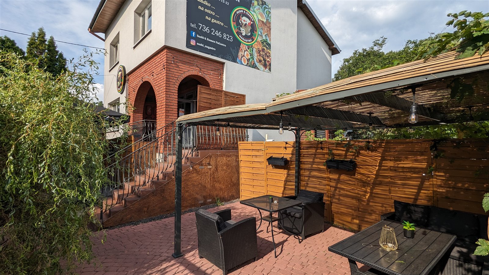 Lokal jest w pełni przystosowany i wyposażony do prowadzenia działalności gastronomicznej. Ogródek w sezonie letnim pomieści ponad 20 osób, który jest w pełni wyposażony w stoły, krzesła, fotele i kanapy.