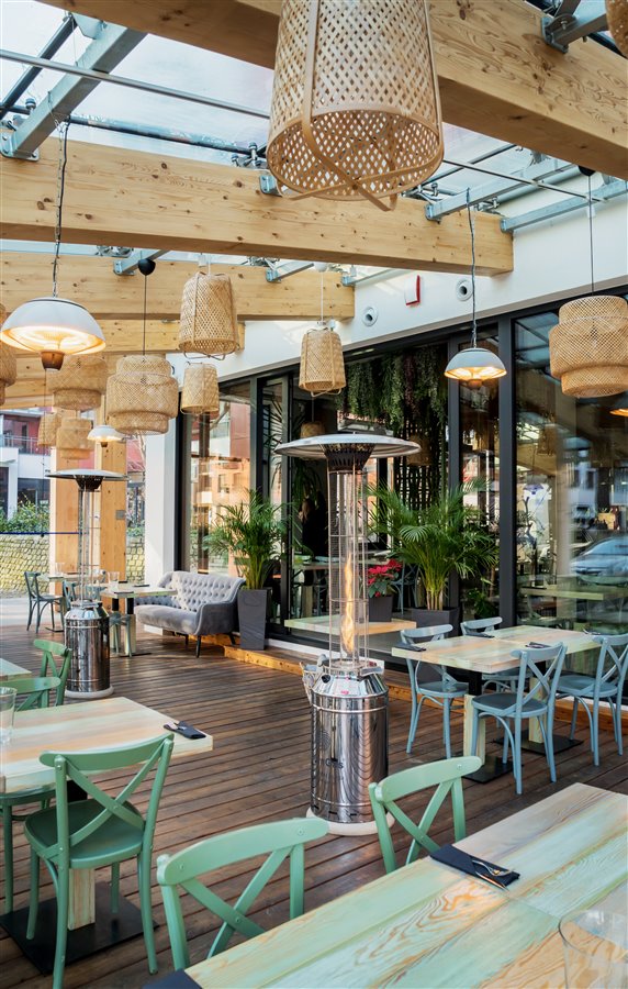 Oranżeria- całoroczny ogród zimowy, z bezpośrednim wejściem z lokalu oraz czterema wejściami bezpośrednio z ulicy. W przypadku imprez okolicznościowych bądź spotkań biznesowych istnieje możliwość zamknięcia części oranżerii od wewnętrznej części lokalu, dzięki czemu mogą działać dwie niezależne powierzchnie, w dalszym ciągu przyjmując Gości wejściem od strony antresoli.