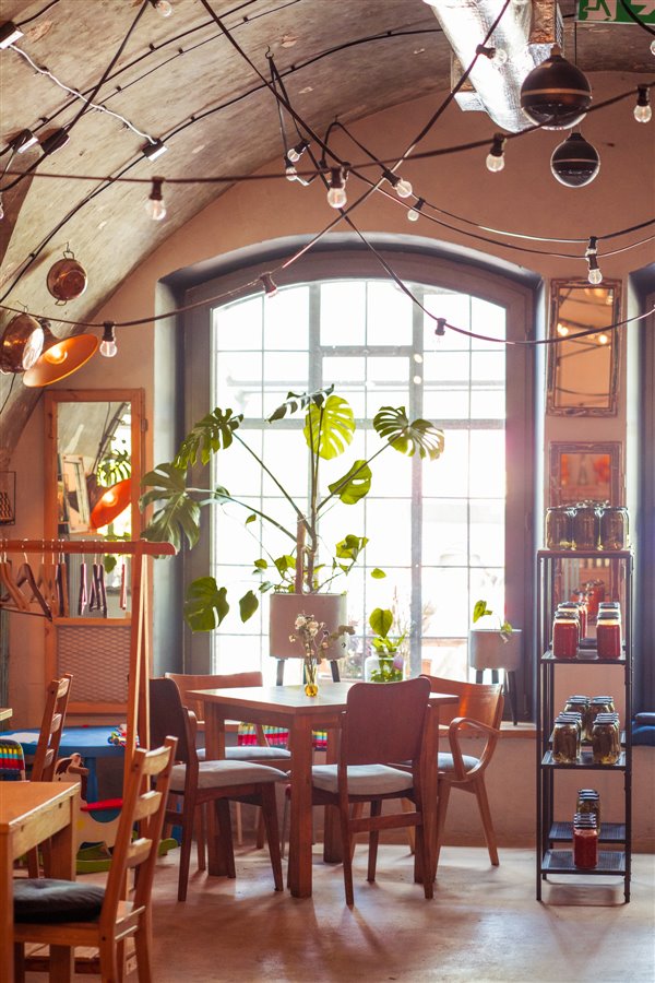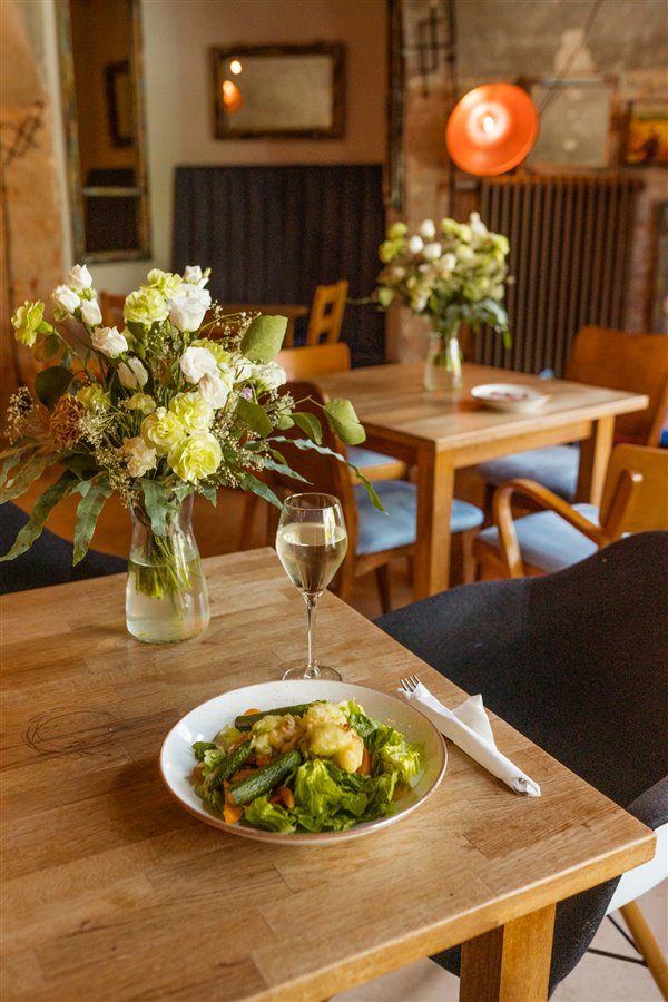 Serwuje rano śniadania, w ciągu dnia lunch oraz kartę stałą.