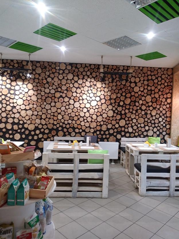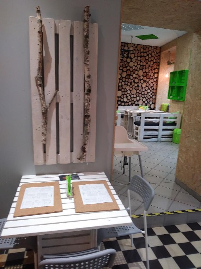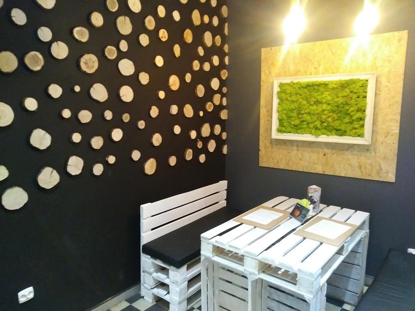 Restauracja ma bardzo oryginalne wnętrze, całość lokalu wykonana jest z drewna, palet, skrzynek, krążków drewna, żywego mchu. Jej wystrój przyciąga wielu gości, którzy następnie stają się stałymi Klientami.
