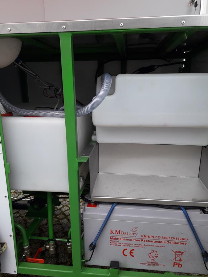 4) dwa duże zbiorniki na czystą i brudną wodę;