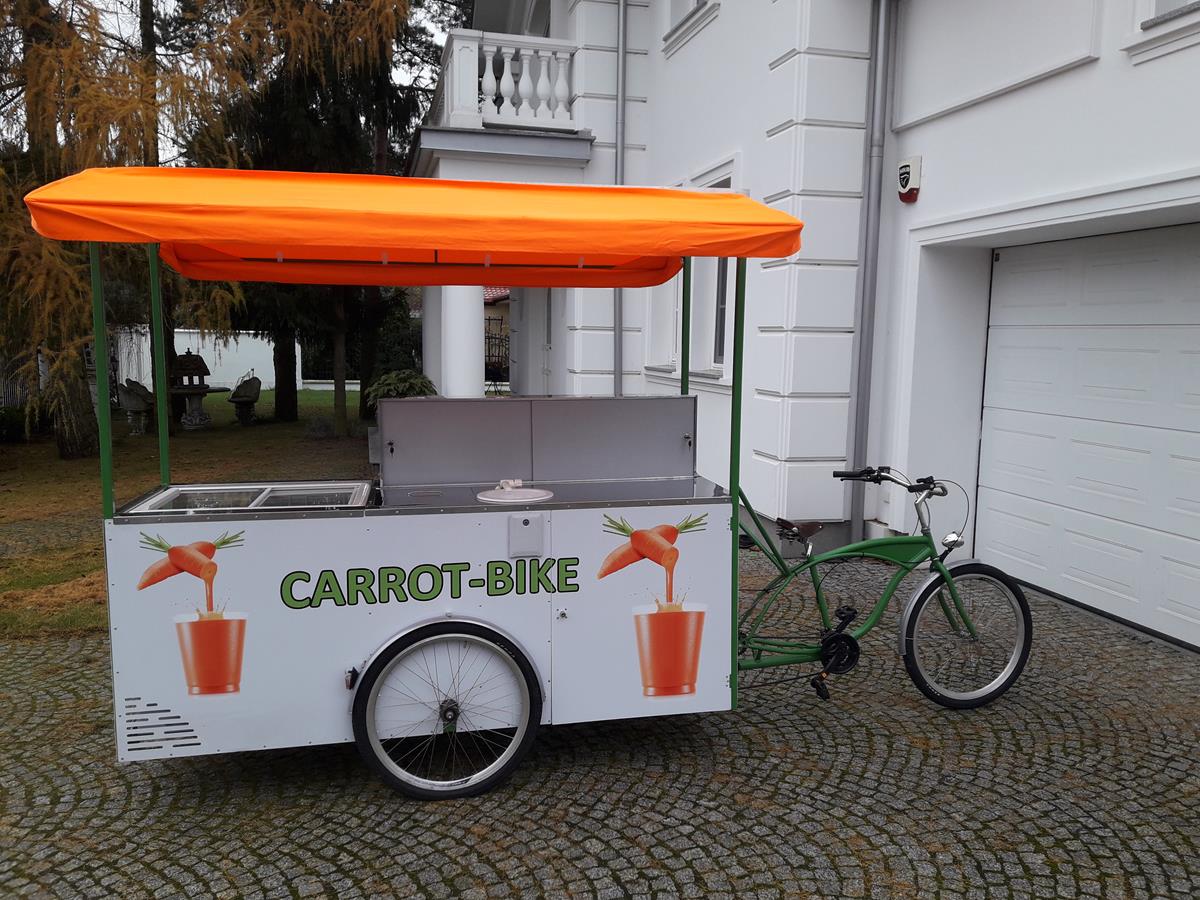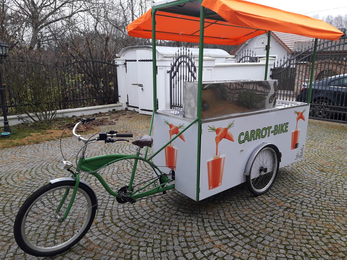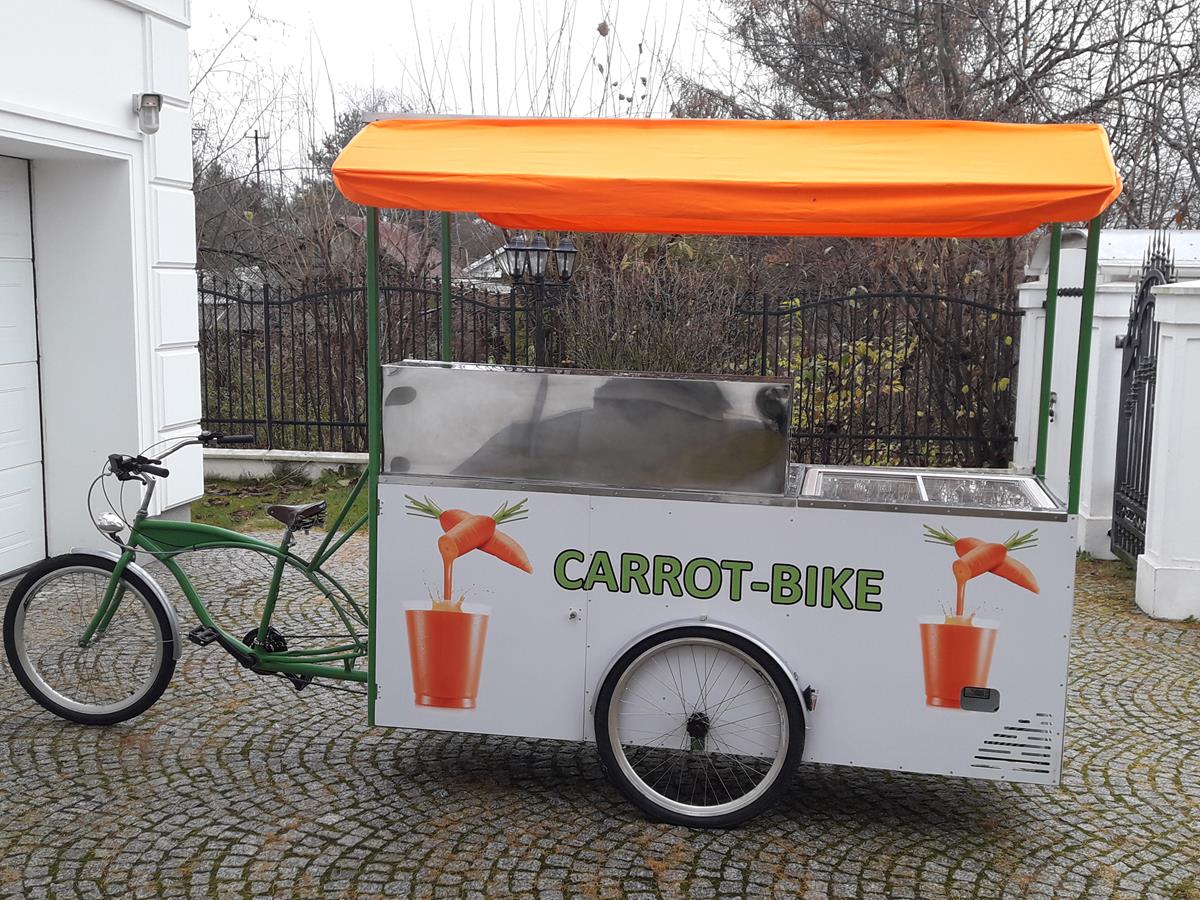 Jestem pomysłodawcą i właścicielem jedynego wyprodukowanego dotąd egzemplarza roweru gastronomicznego Carrot-Bike, stworzonego głównie z myślą o produkcji i sprzedaży świeżych soków z warzyw lub owoców, w szczególności z marchwi. Jednakże duża funkcjonalność roweru umożliwia jego dowolne wykorzystanie zarówno w małej gastronomii jak i w handlu.