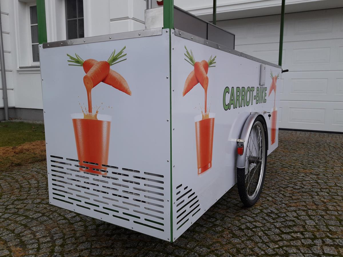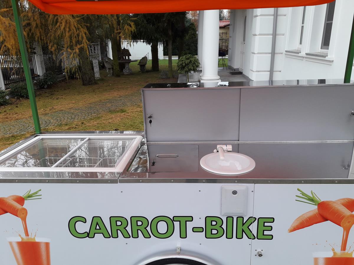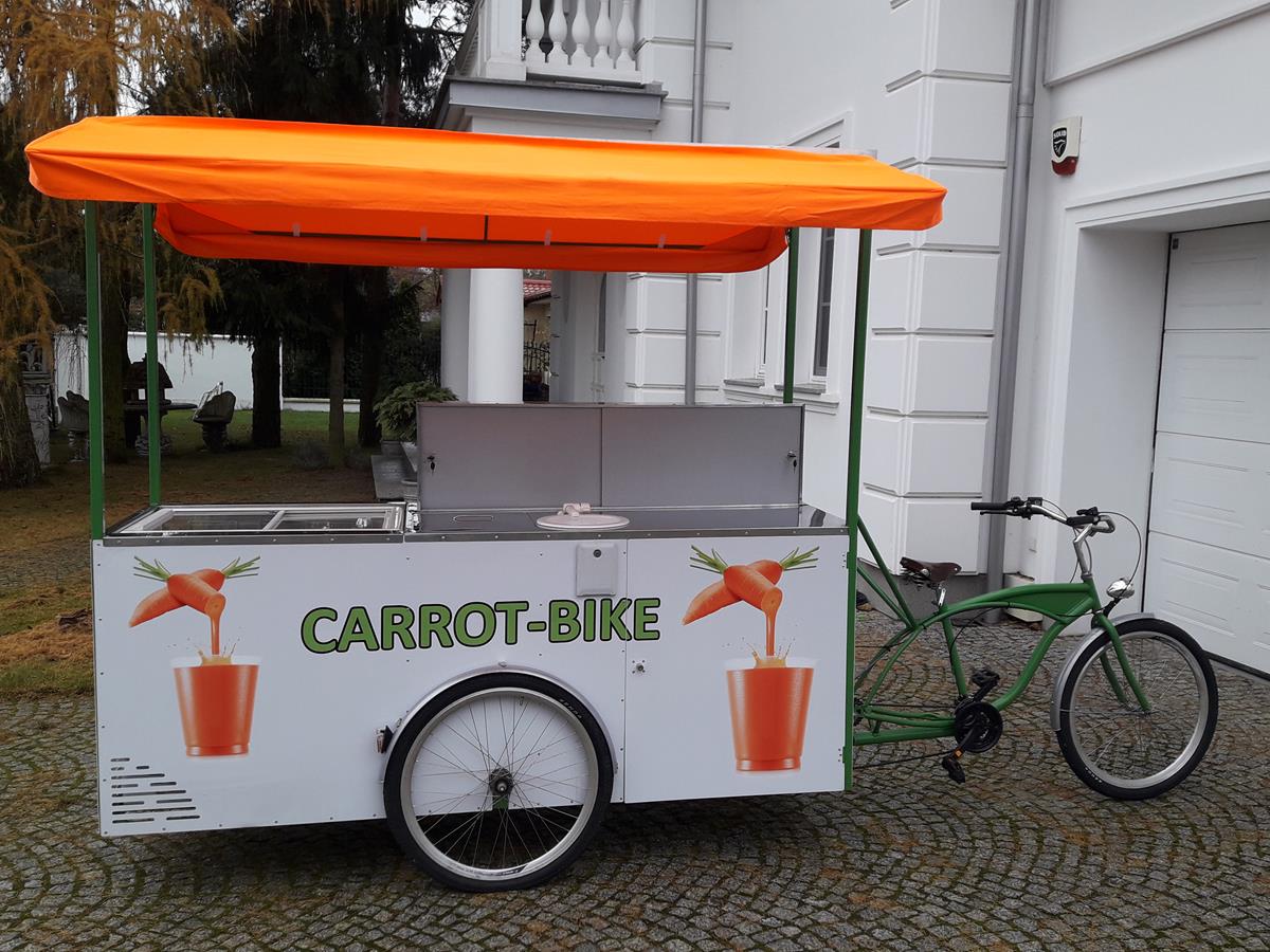 Jestem pomysłodawcą i właścicielem jedynego wyprodukowanego dotąd egzemplarza roweru gastronomicznego Carrot-Bike, stworzonego głównie z myślą o produkcji i sprzedaży świeżych soków z warzyw lub owoców, w szczególności z marchwi. Jednakże duża funkcjonalność roweru umożliwia jego dowolne wykorzystanie zarówno w małej gastronomii jak i w handlu.