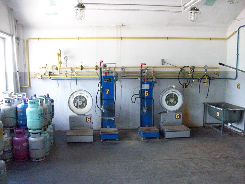 b. rozlewnia gazu: napełnianie butli gazem propan-butan