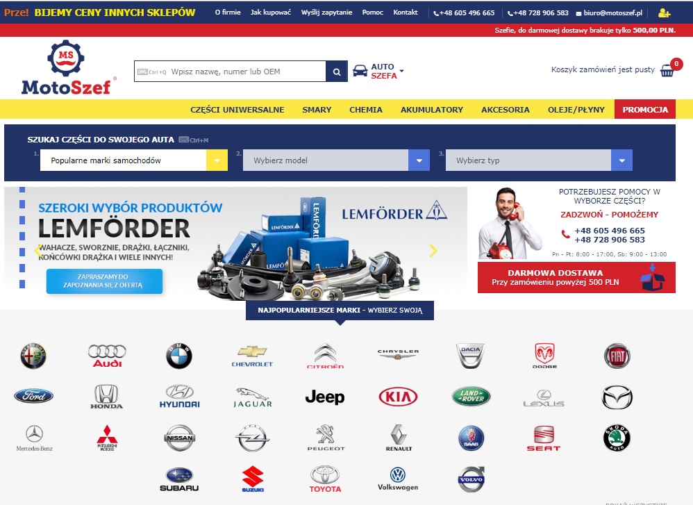 Rozpoznawalna platforma sprzedaży/sklep internetowy z częściami samochodowymi