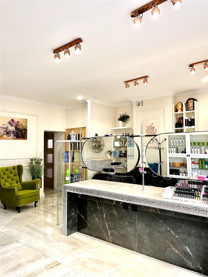 Lokal użytkowy który aktualnie funkcjonuje jako salon fryzjerski. Lokal wielkości 75m² z remontem wykonanym w 2021 roku za 160 000 zł. Posiada docieplone i wygłuszone sufity, nową instalację elektryczną trójfazową,96 kontaktów, każdy pokój ma swoją rozdzielnię z licznikiem razem 4, miesiąc temu była sprawdzana wentylacja przymusowa i działa rewelacyjnie, 2 szyldy na zewnątrz, 6 wyjść na wodę. Lokal jest bardzo ciepły nie trzeba włączać grzejników